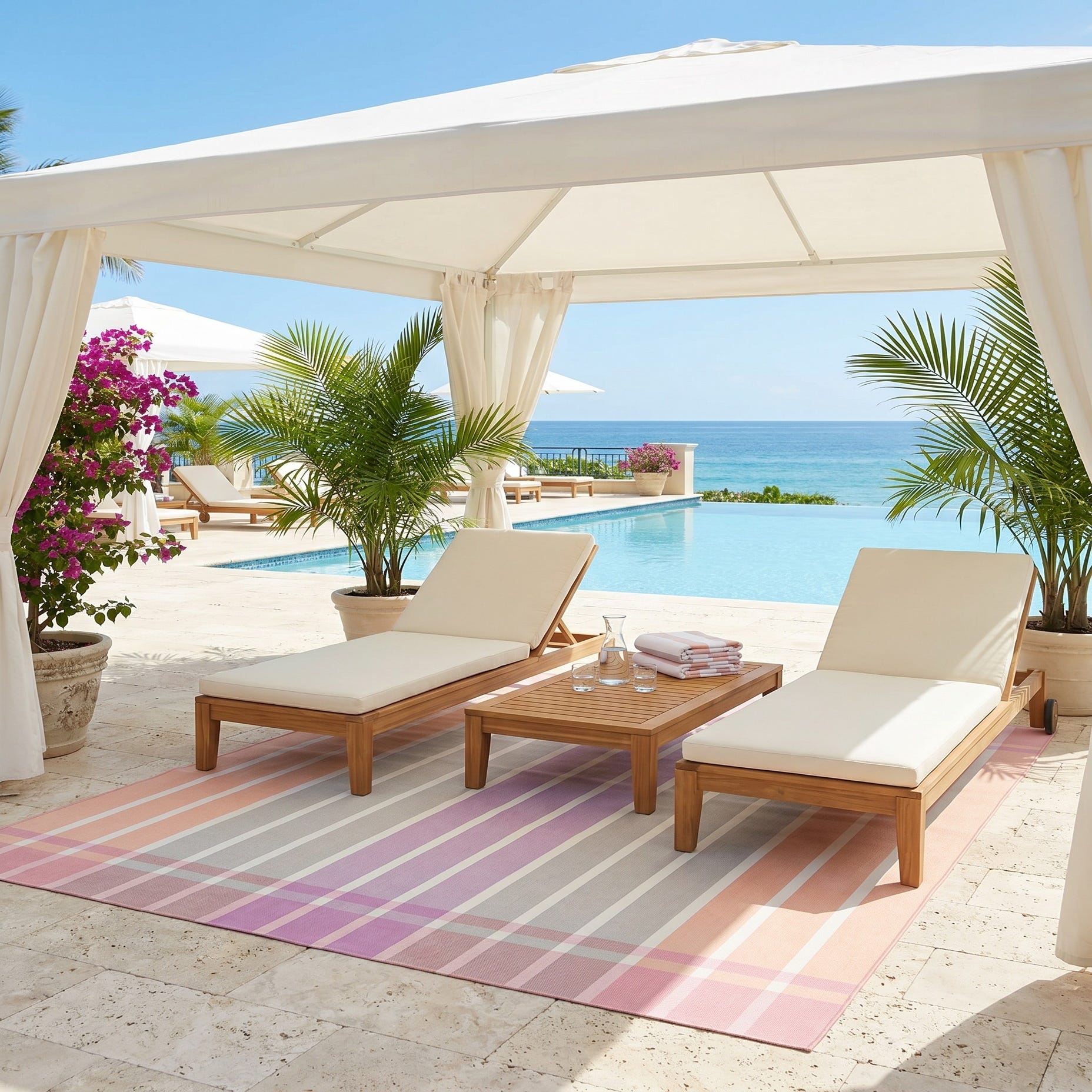 7' 10 x 10' Easy-Clean Striped Indoor / Outdoor Rug