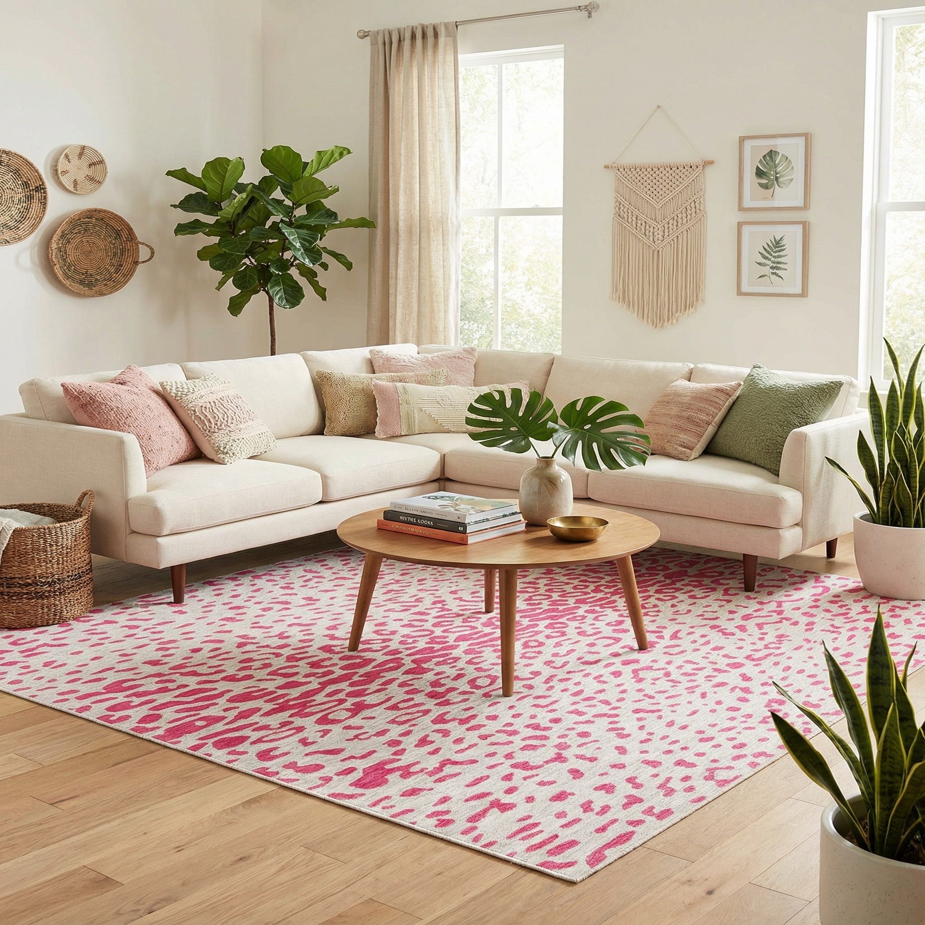 Primary color is Pink Gray. Colors in this rug include: Pink Gray, Ivory.