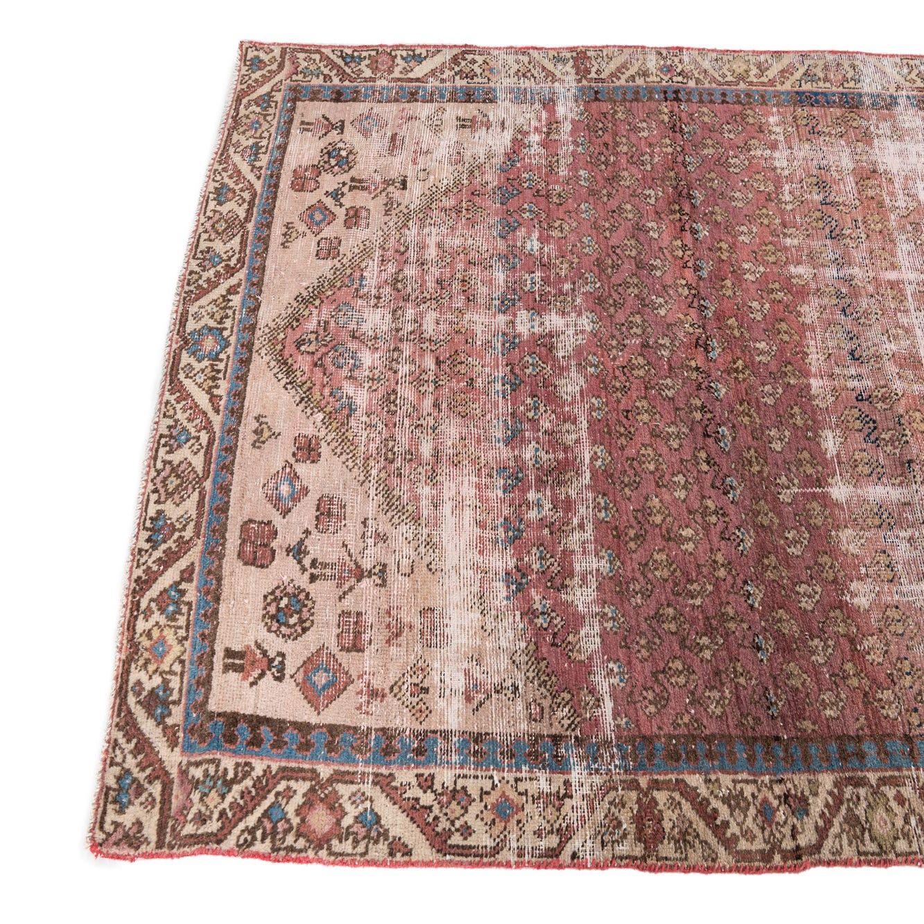 This Persian Ultra Vintage rug is an antique Persian Rug that has been washed, over-dyed, and then shaved down to a low pile. Look at the detail pictures to fully appreciate the uniqueness of this piece.