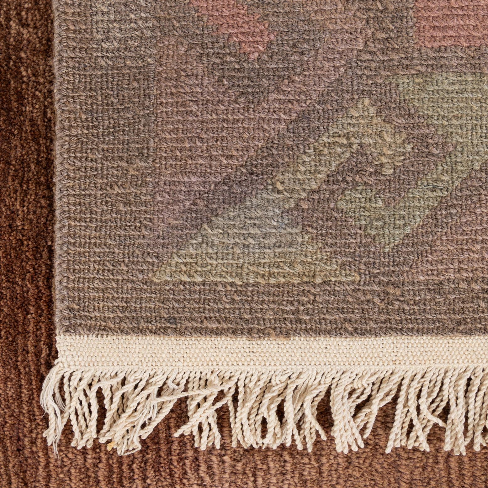 Primary color is Plum Red. Colors in this rug include: Plum Red, Brown, Olive.