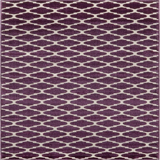 Primary color is Purple. Colors in this rug include: Purple, Ivory.