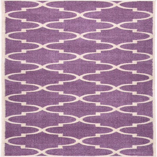 Primary color is Purple. Colors in this rug include: Purple, Ivory.