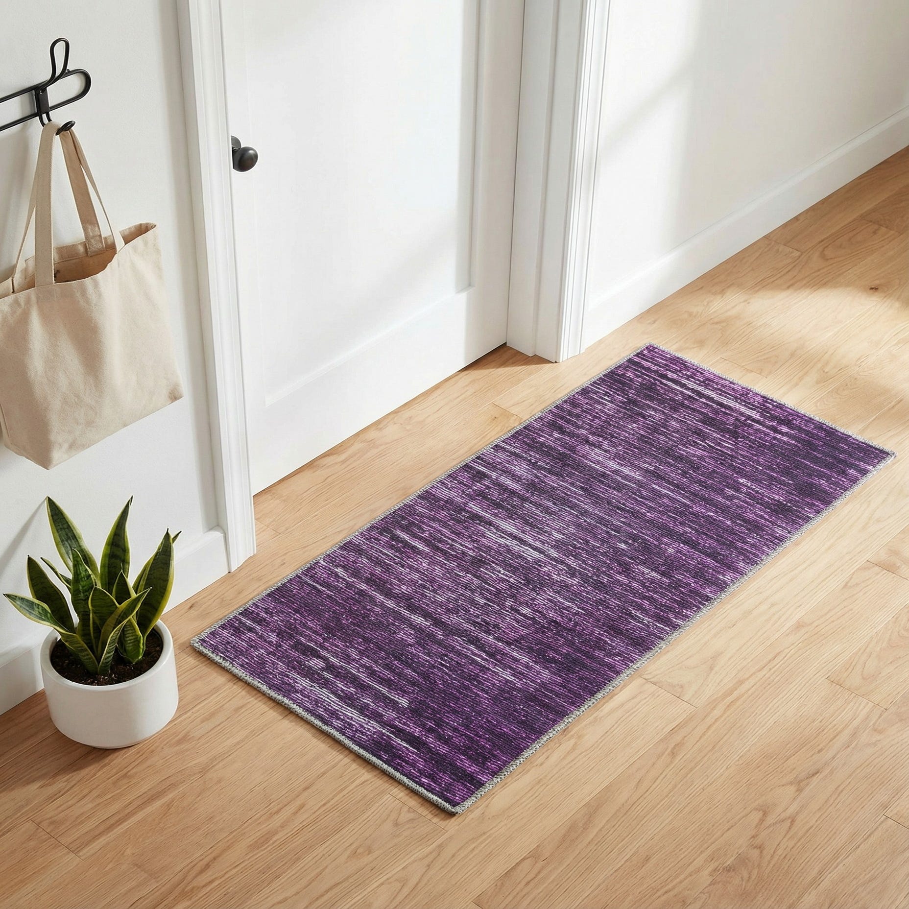 Primary color is Purple. Colors in this rug include: Purple, Ivory.