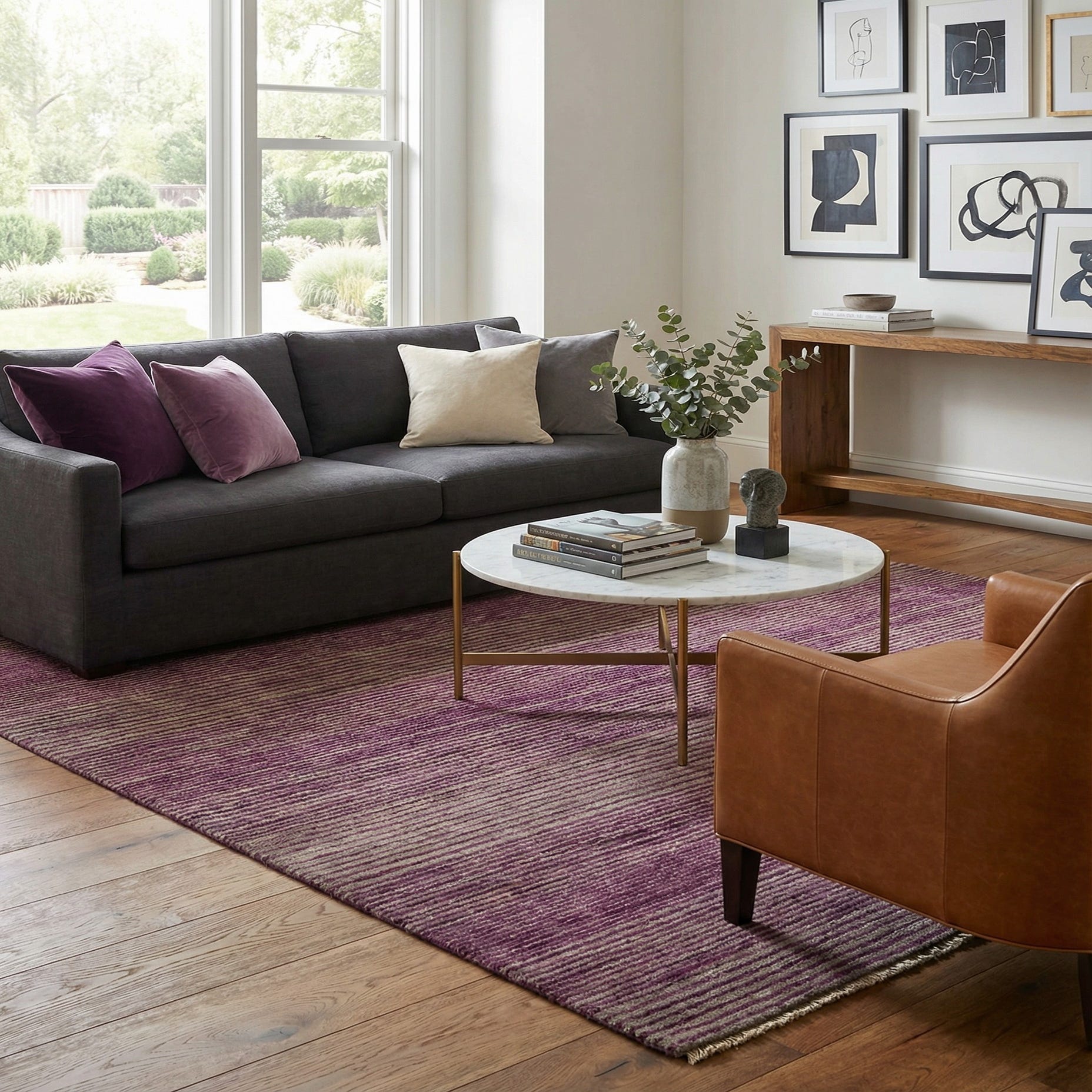 Primary color is Purple. Colors in this rug include: Purple, Violet, Grey.
