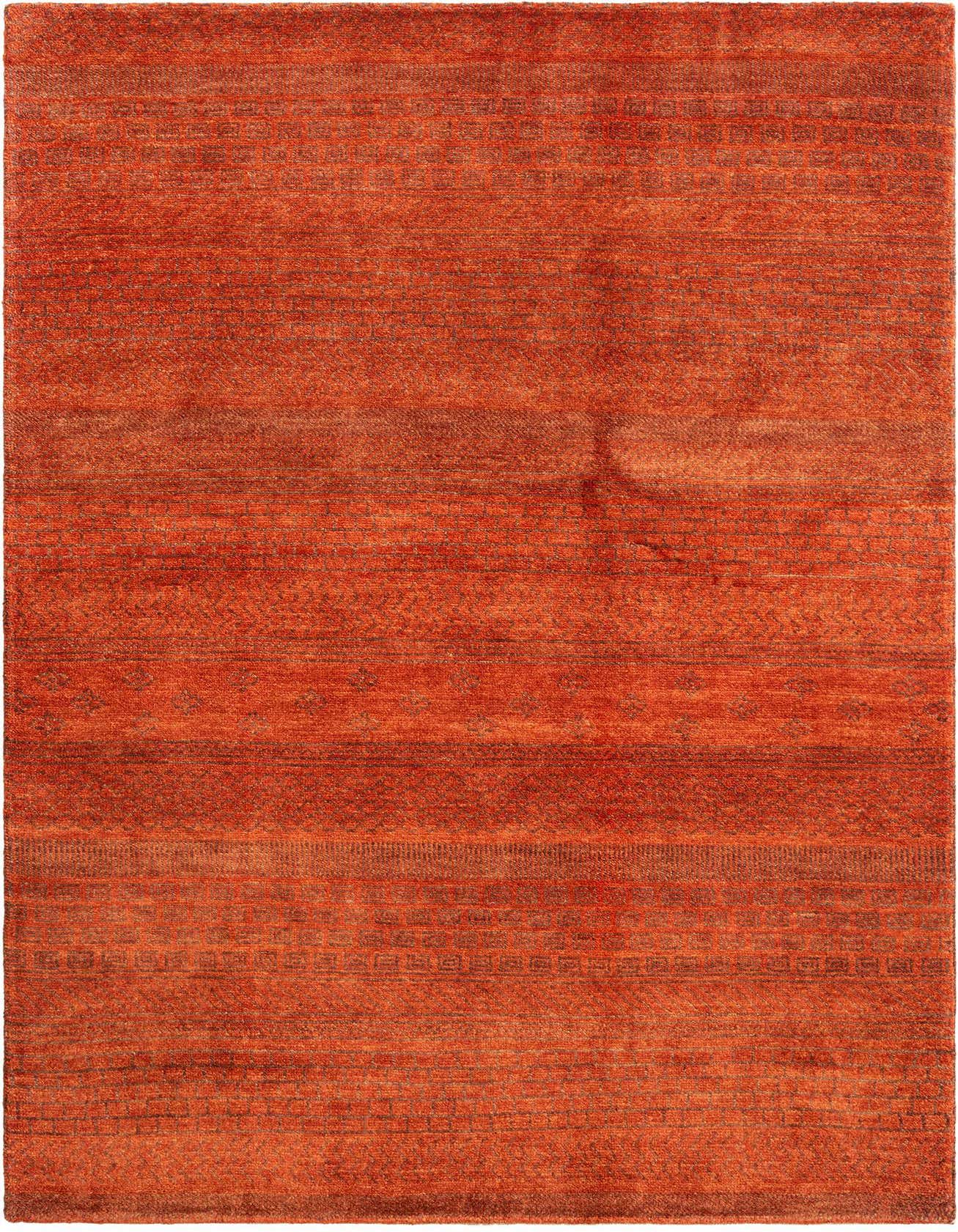 Primary color is Purple. Colors in this rug include: Purple, Orange, Brown.