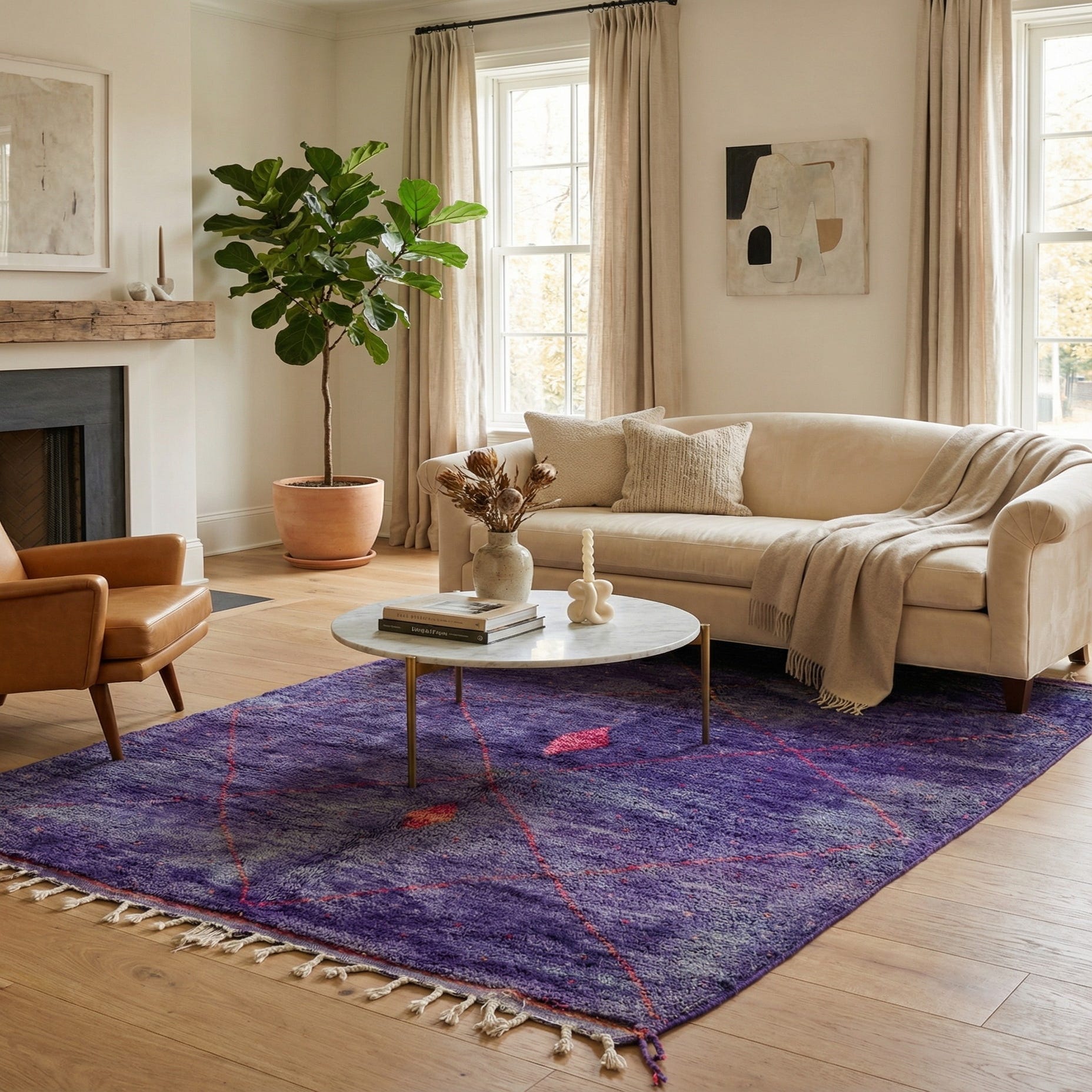 Primary color is Purple. Colors in this rug include: Purple, Pink.