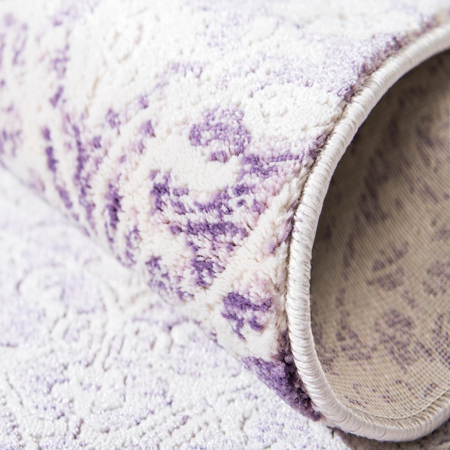 Primary color is Purple. Colors in this rug include: Purple, Ivory.