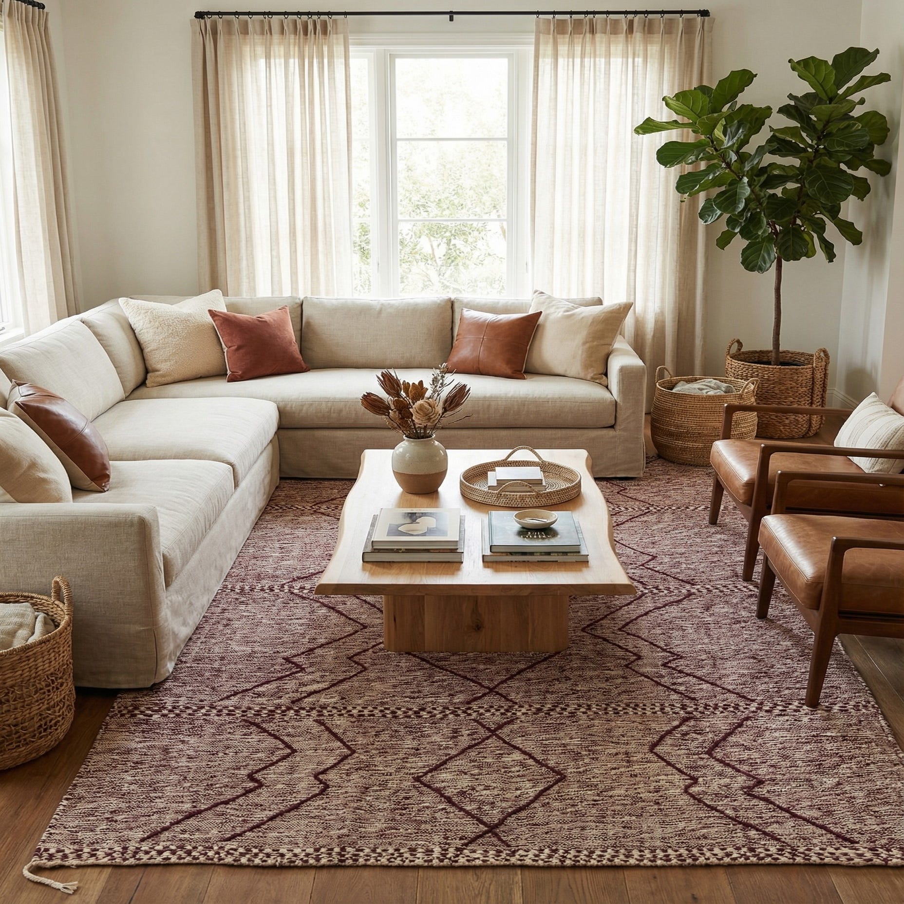 Primary color is Purple. Colors in this rug include: Purple, Ivory.