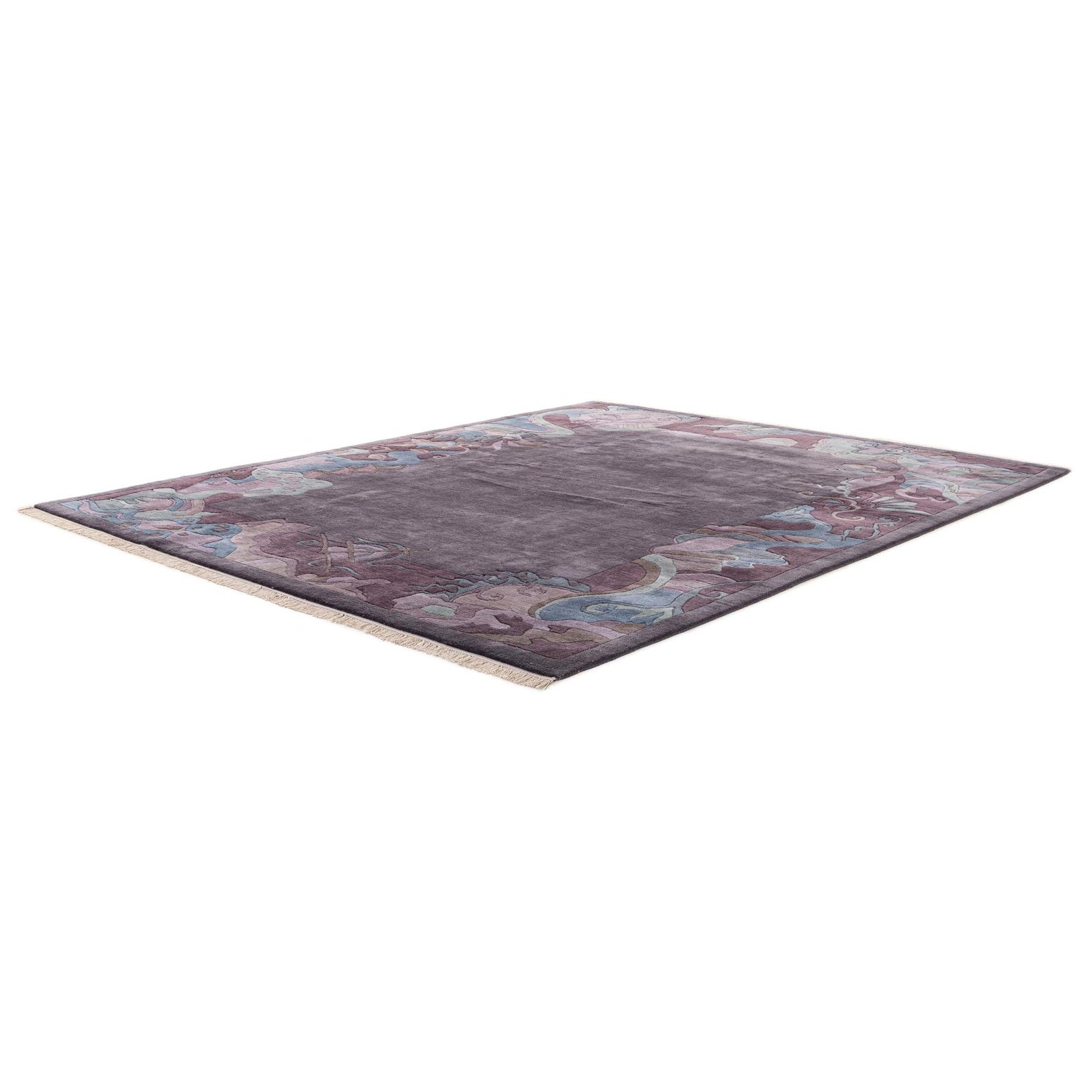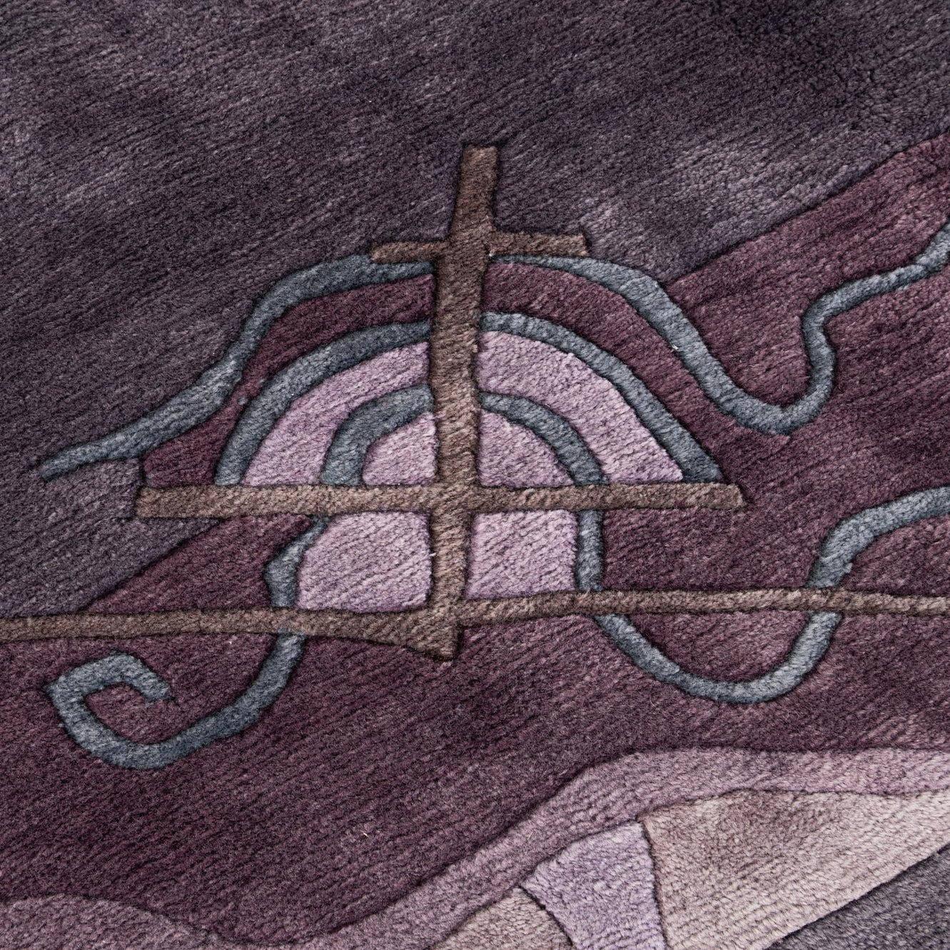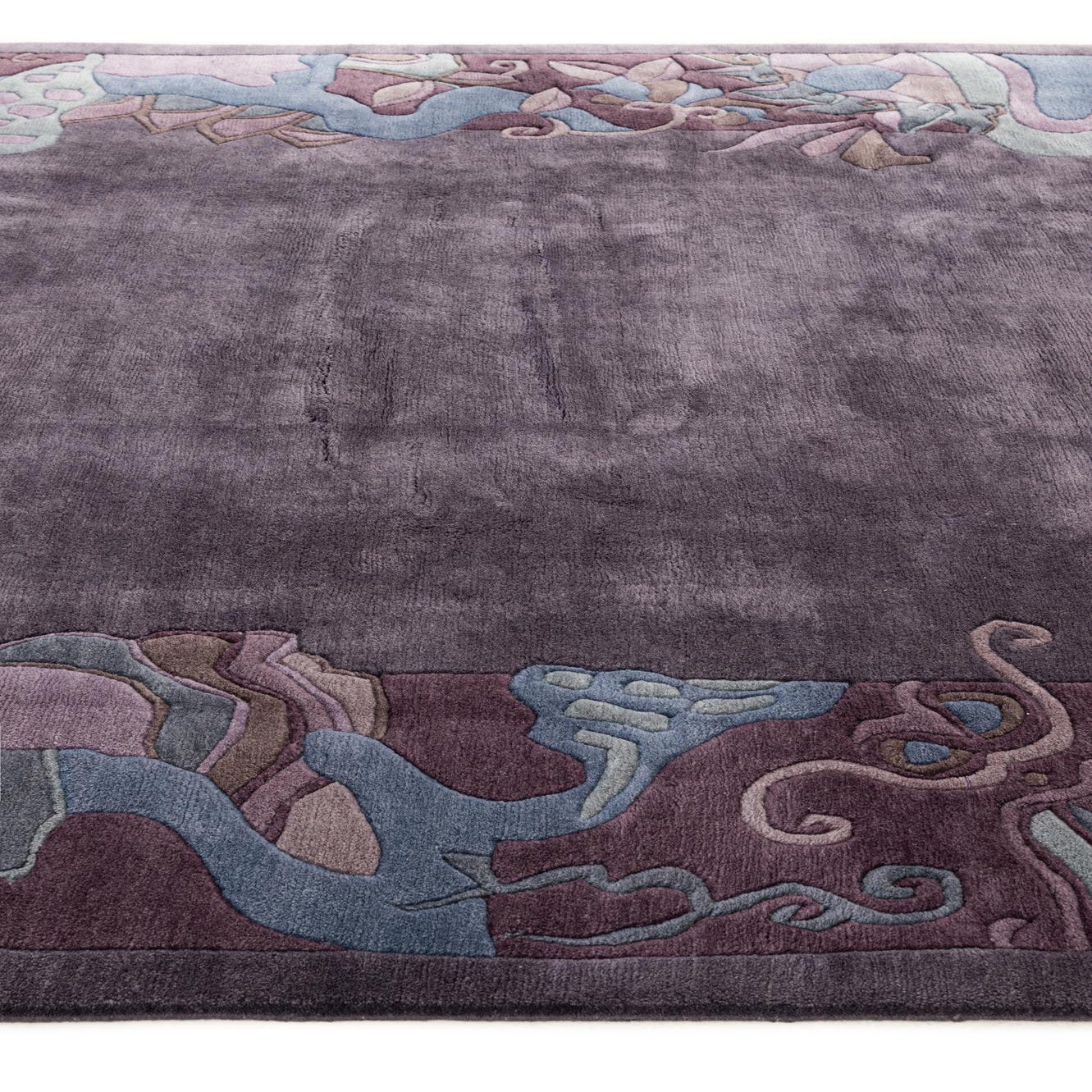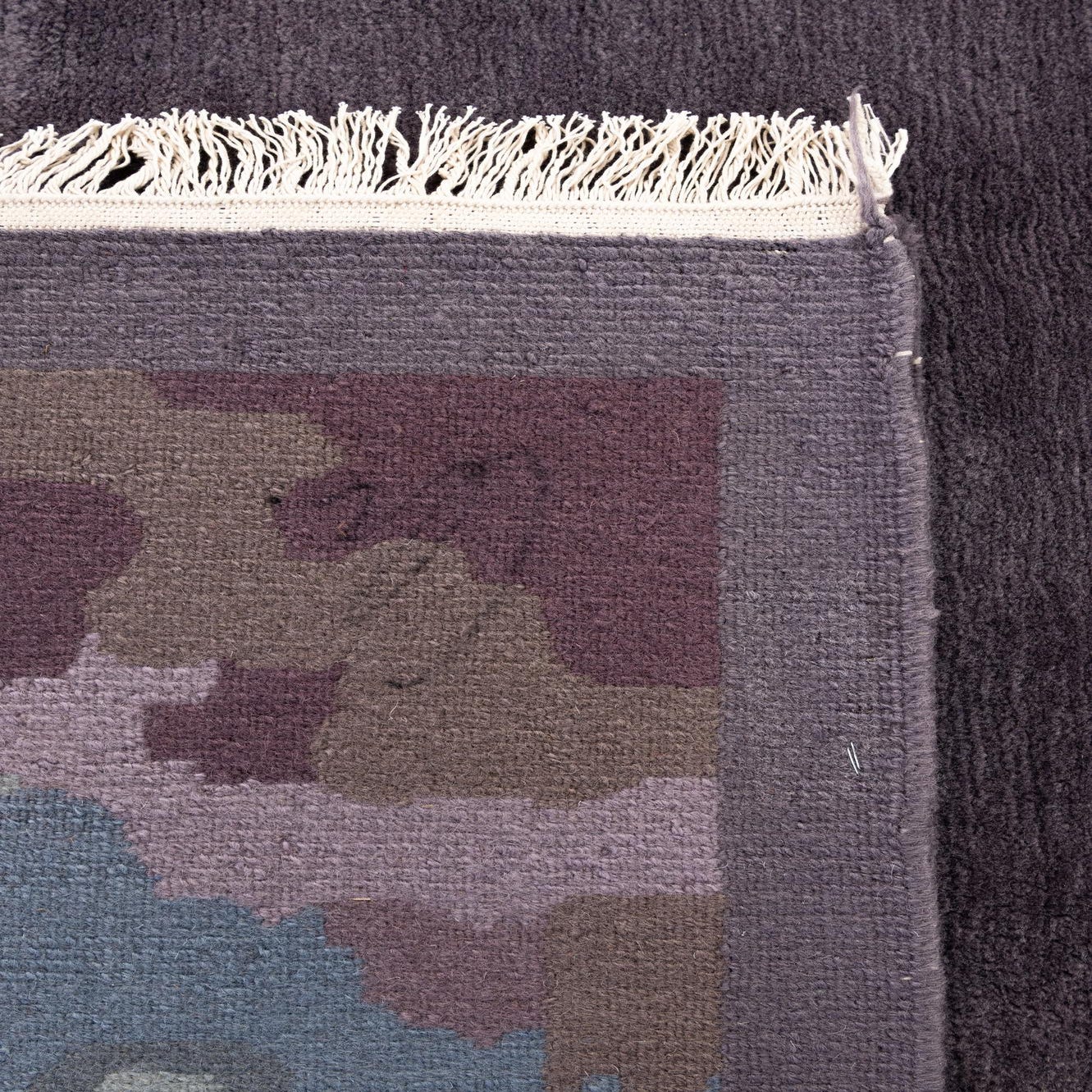 Primary color is Purple. Colors in this rug include: Purple, Gray, Light Blue, Light Green.