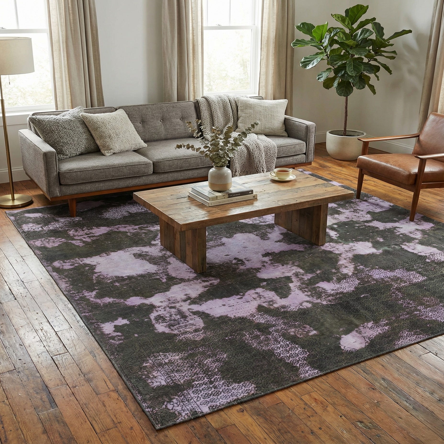 Primary color is Purple. Colors in this rug include: Purple, Black, Gray.