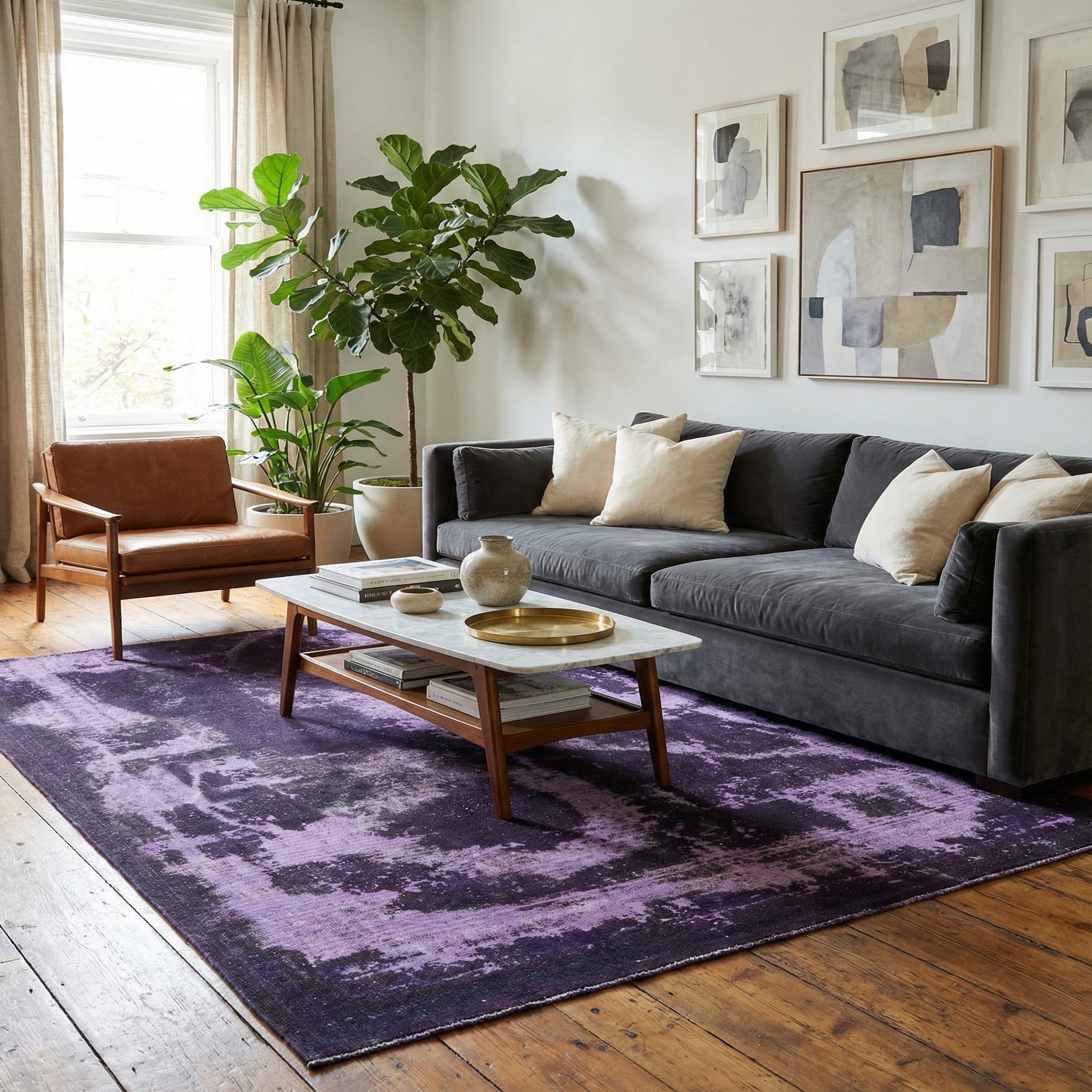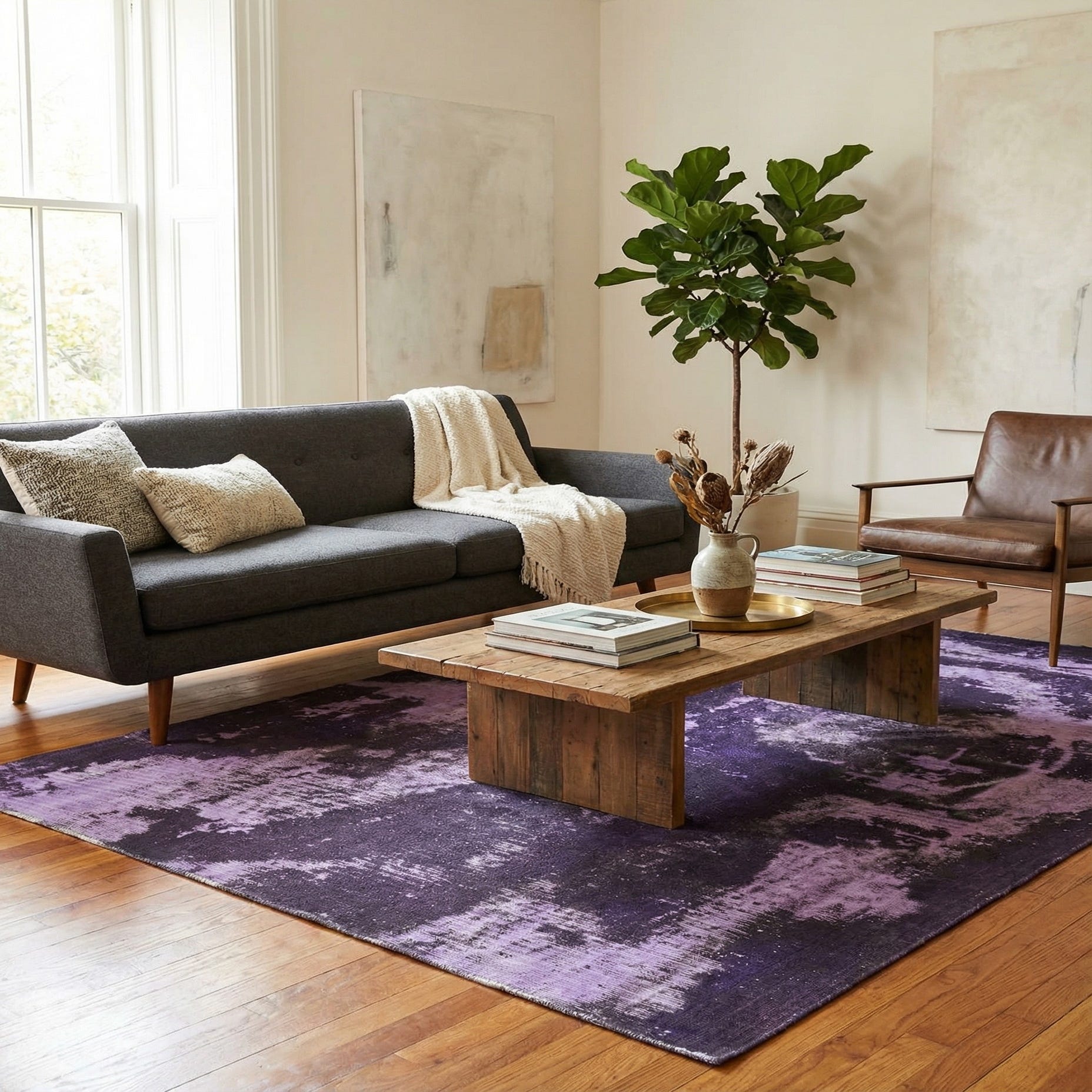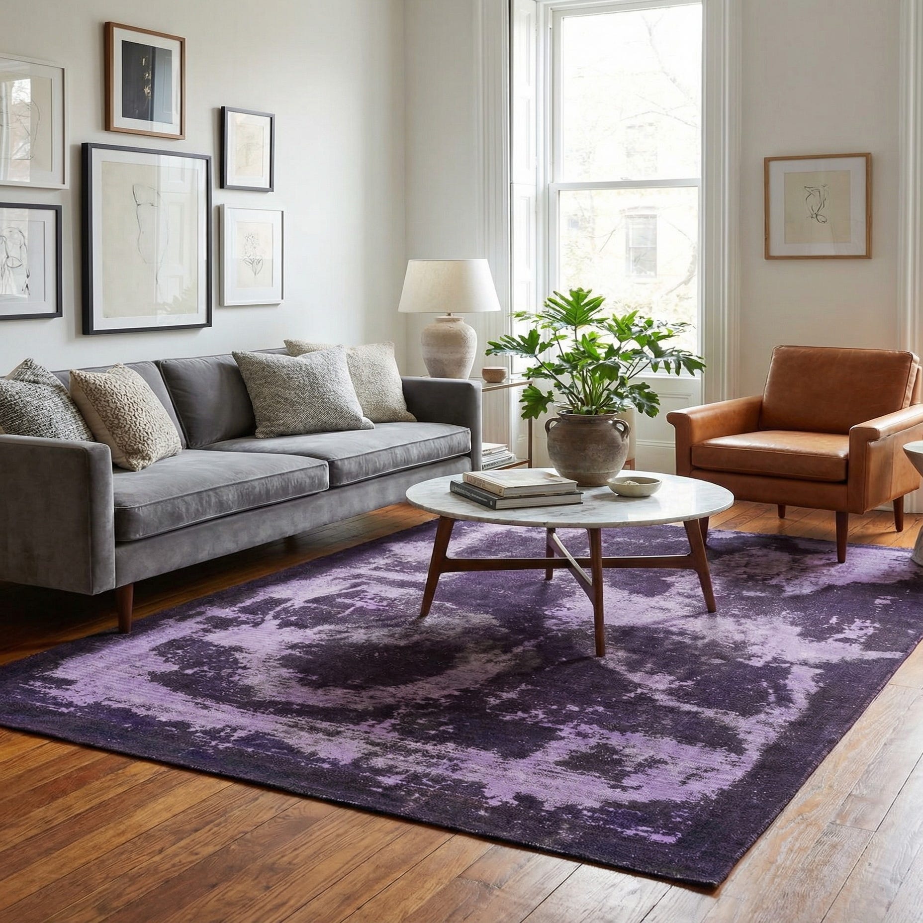 Primary color is Purple. Colors in this rug include: Purple, Violet, Black.
