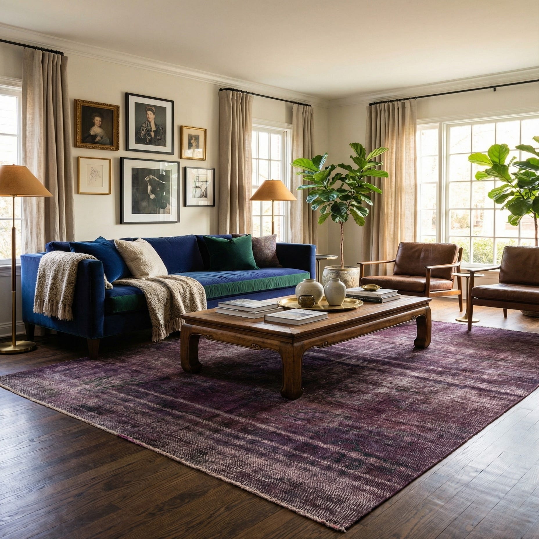 Primary color is Purple. Colors in this rug include: Purple, Ivory.