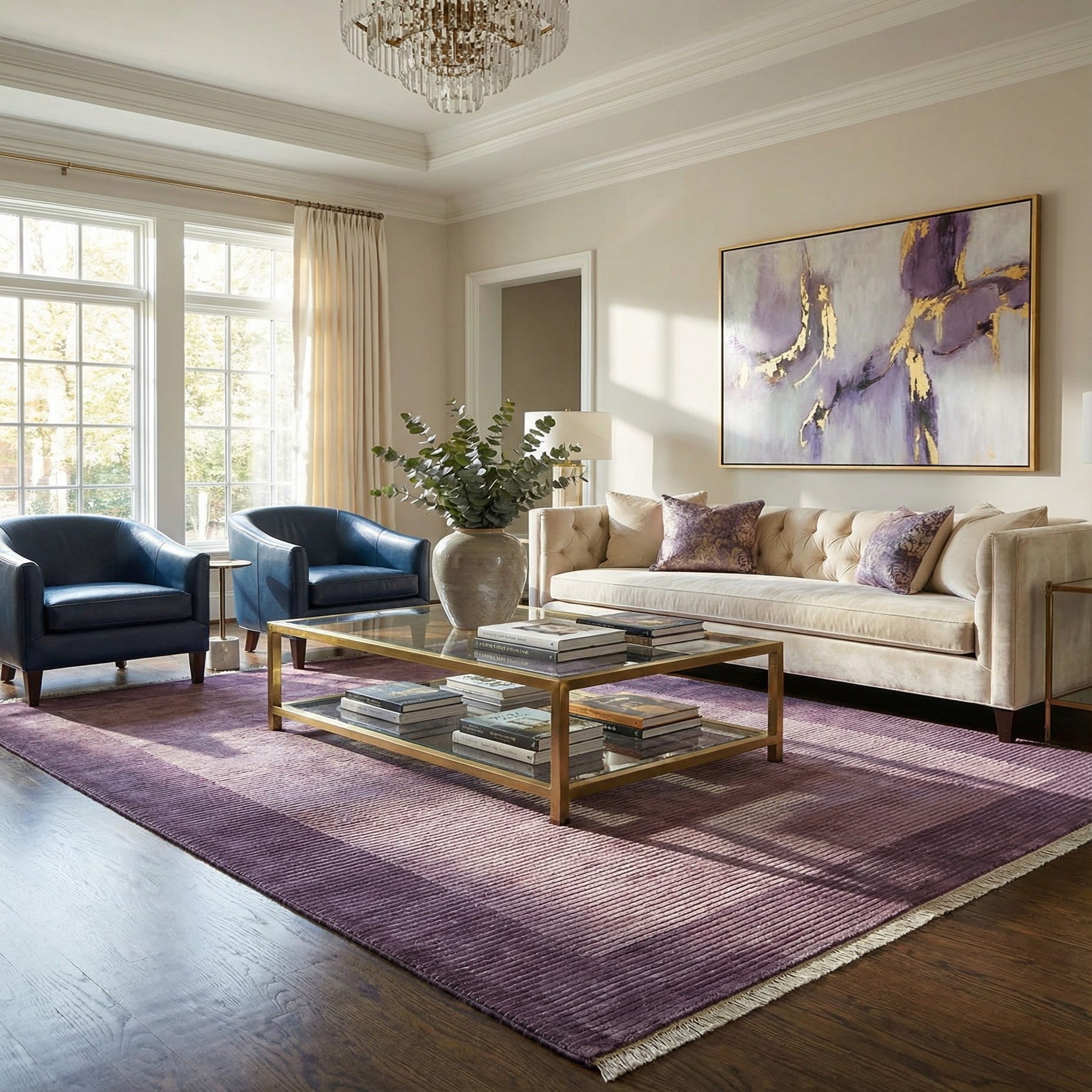 Primary color is Purple. Colors in this rug include: Purple, Plum Red.