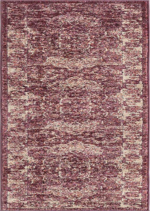 Primary color is Purple. Colors in this rug include: Purple, Ivory, Orange.