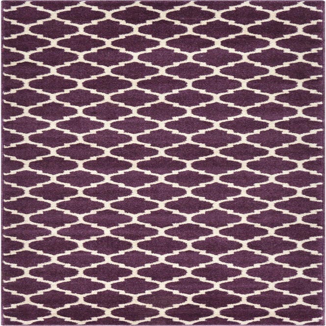Primary color is Purple. Colors in this rug include: Purple, Ivory.