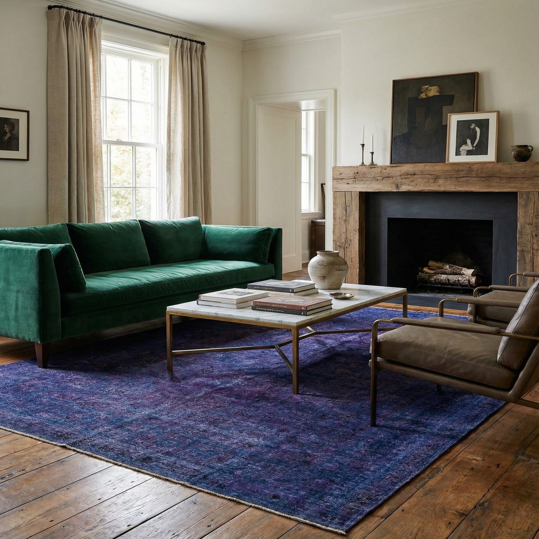 This Persian Ultra Vintage rug is an antique Persian Rug that has been washed, over-dyed, and then shaved down to a low pile. Look at the detail pictures to fully appreciate the uniqueness of this piece.
