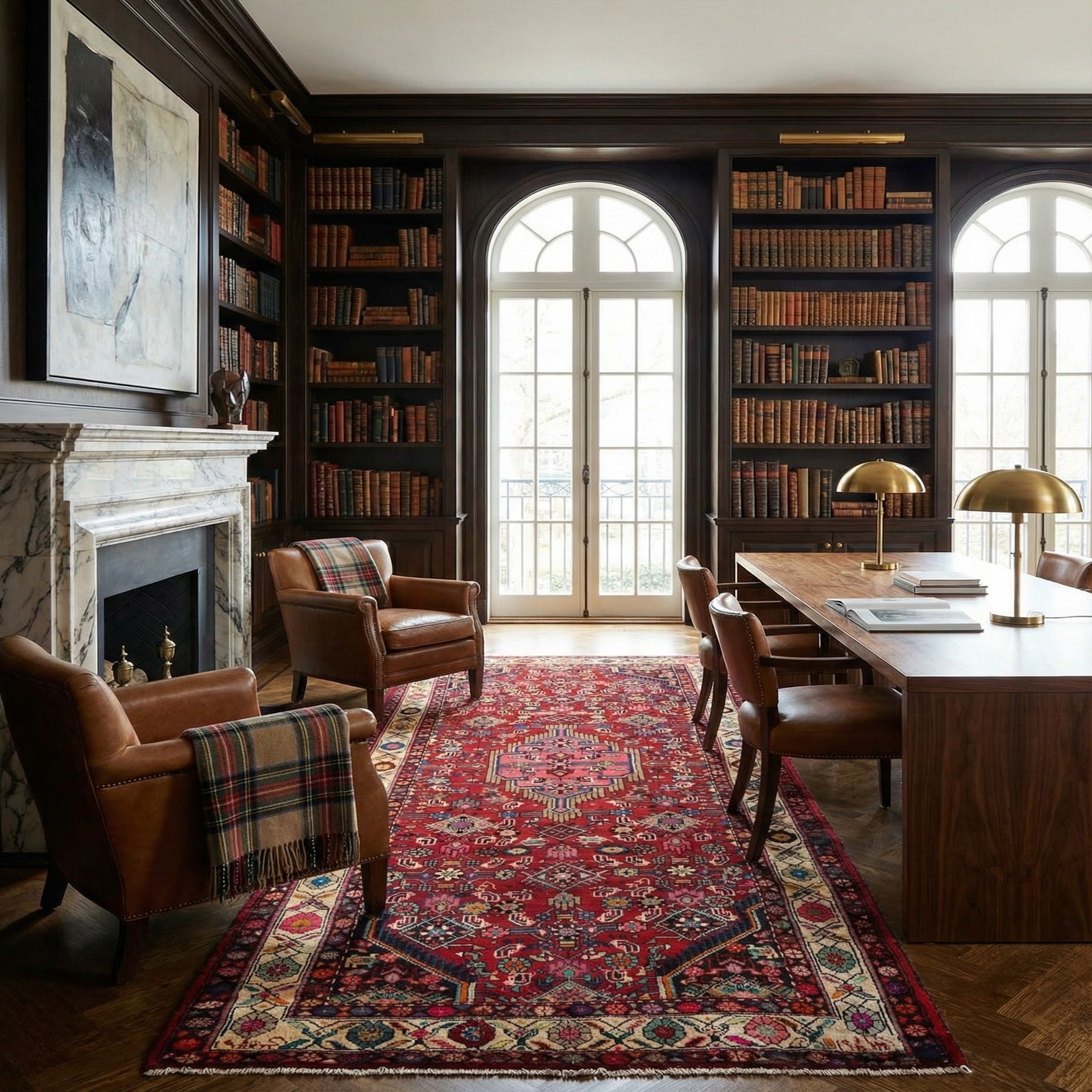 4' 11 x 9' 10 Hamedan Wool Runner Rug