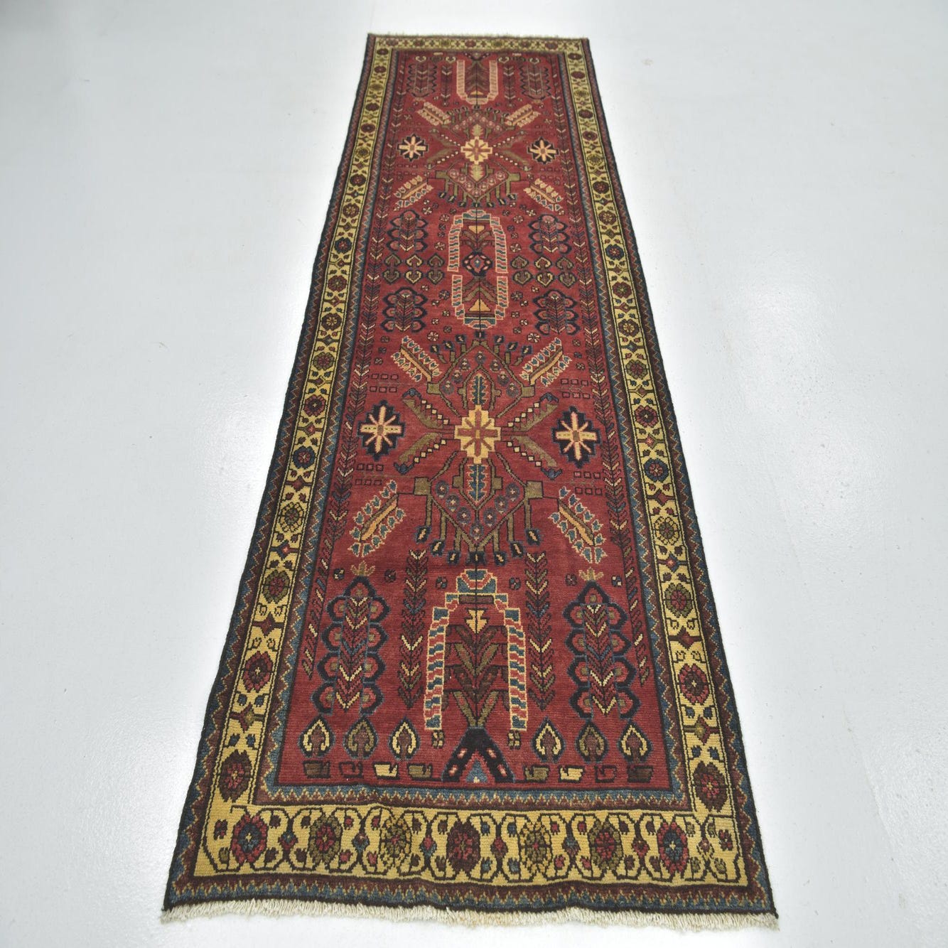 Detail image of 3' 5 x 10'  Hand Knotted Hamedan Persian Wool Runner Rug