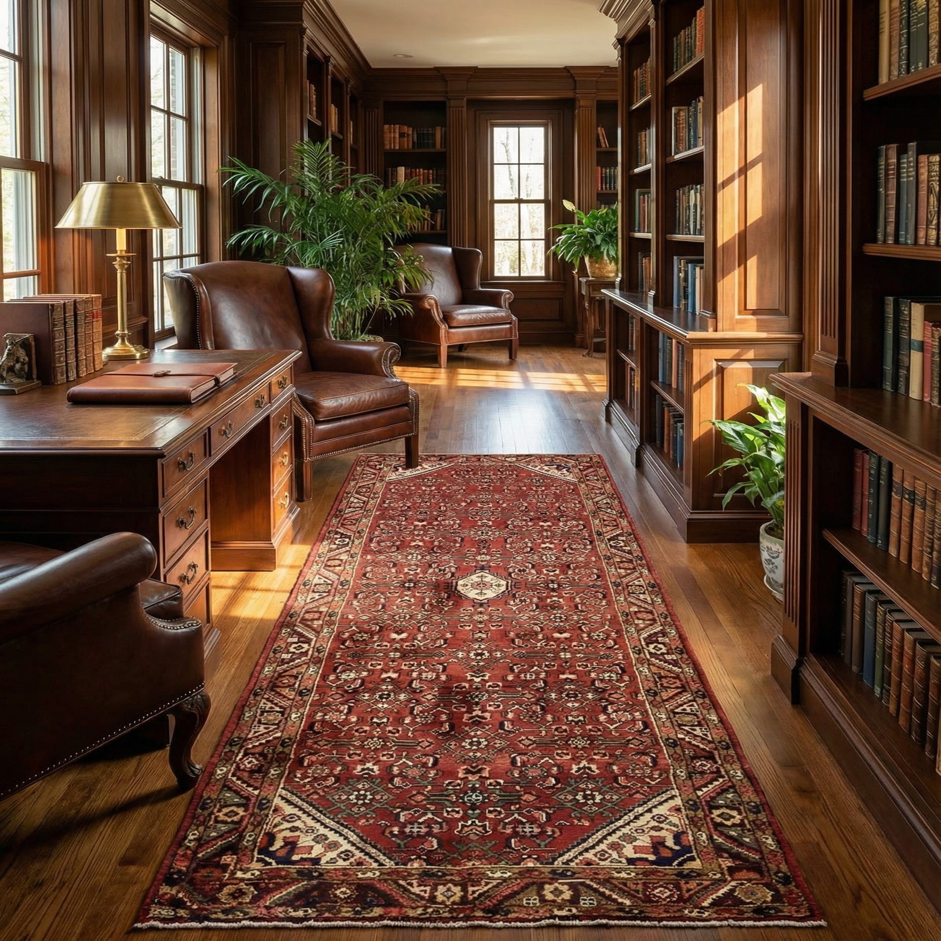 Primary image 3' 8 x 9' 9  Hand Knotted Hossainabad Persian Wool Runner Rug