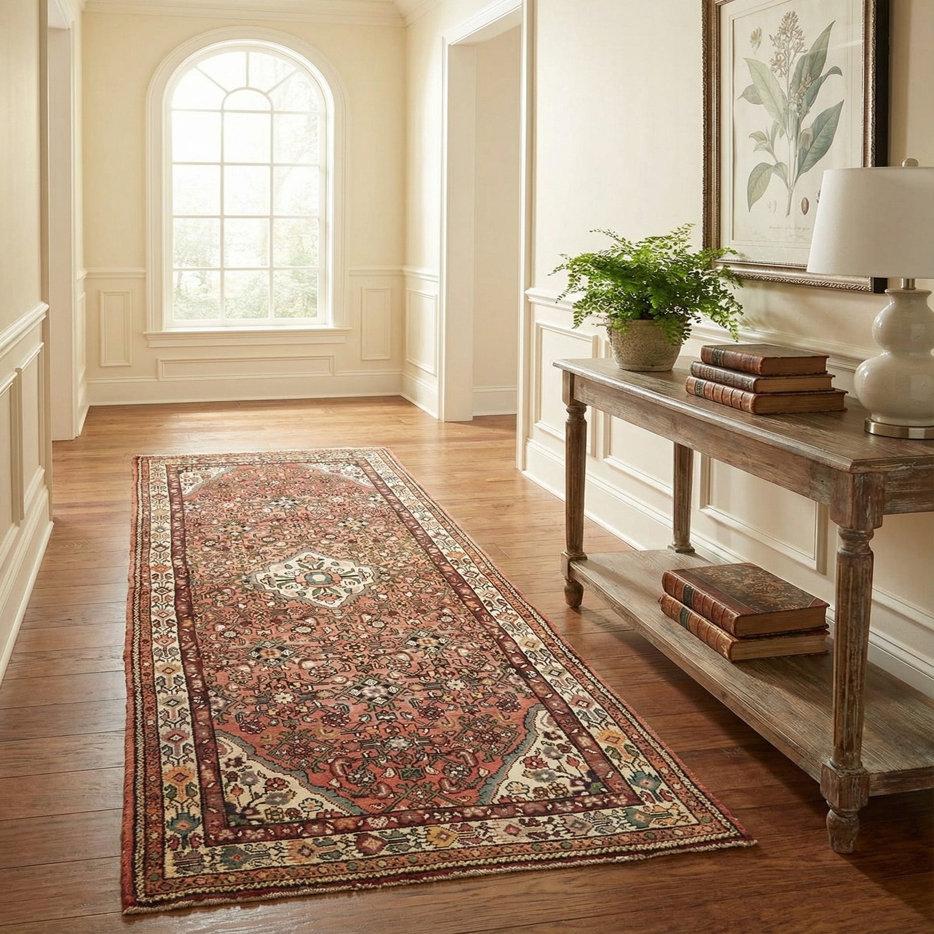3' 10 x 9' 6 Hand Knotted Hossainabad Persian Wool Runner Rug