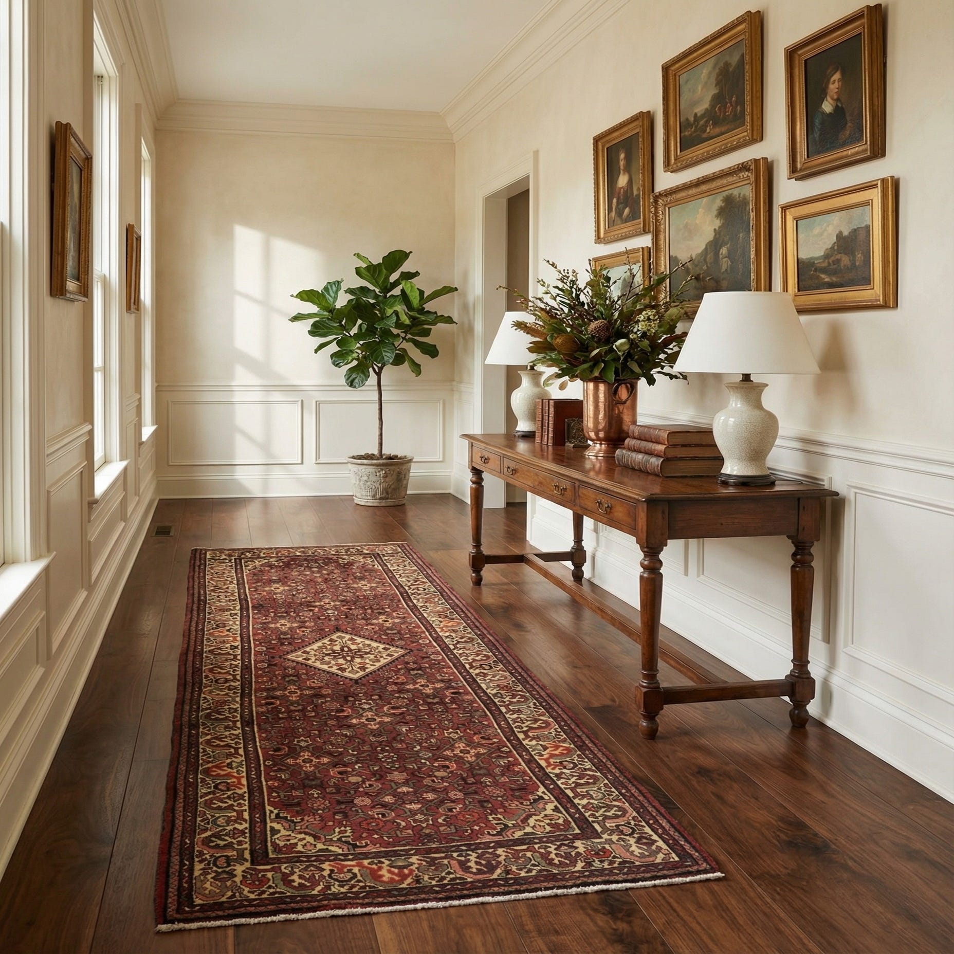 Primary image 3' 10 x 9' 9  Hand Knotted Hossainabad Persian Wool Runner Rug
