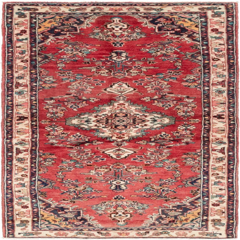 Primary color is Red. Colors in this rug include: Red, Beige, Black, Blue, Brown, Green, Ivory, Navy Blue, Orange, Pink.