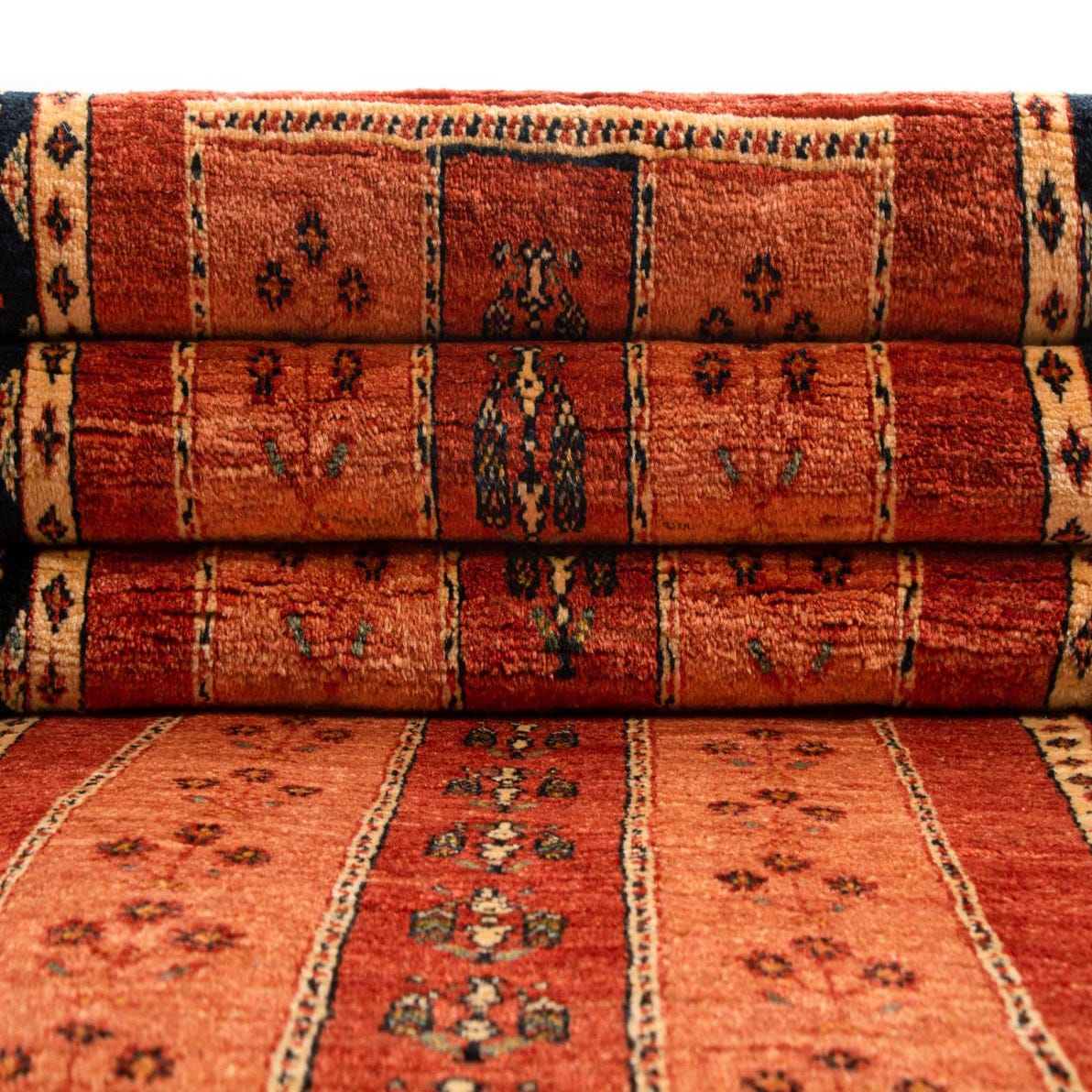 Primary color is Red. Colors in this rug include: Red, Red, Orange, Beige, Dark Blue.