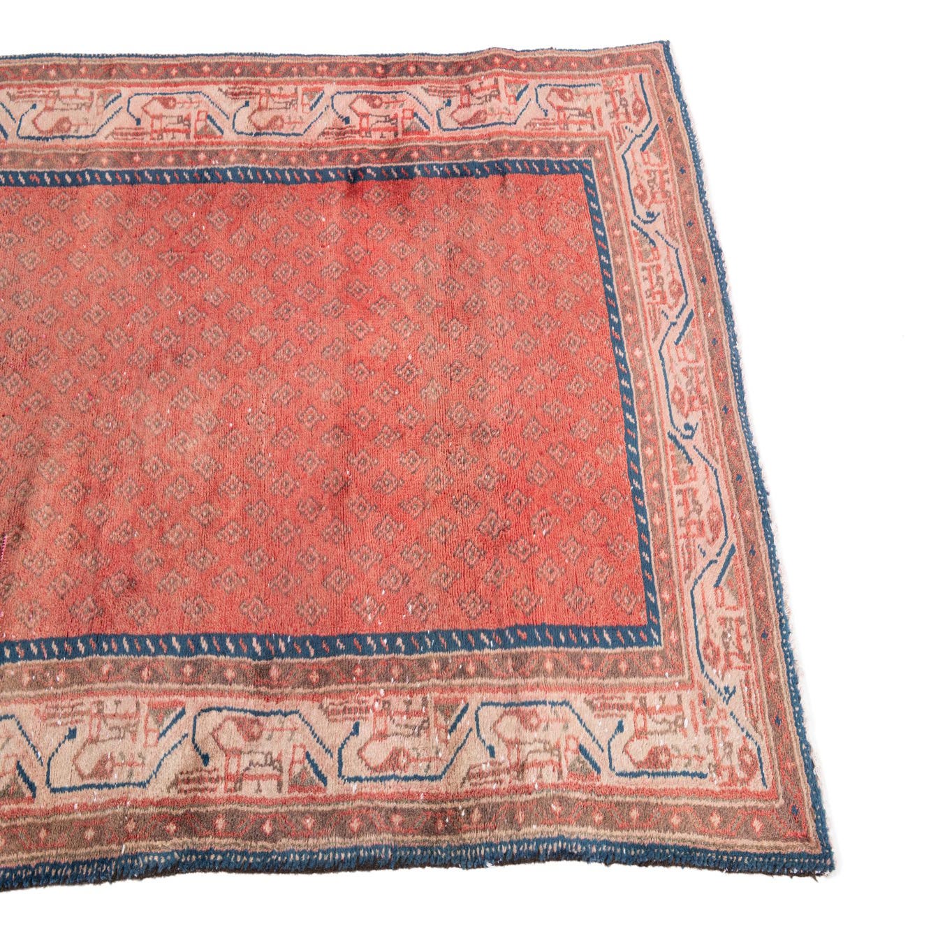 This Persian Ultra Vintage rug is an antique Persian Rug that has been washed, over-dyed, and then shaved down to a low pile. Look at the detail pictures to fully appreciate the uniqueness of this piece.