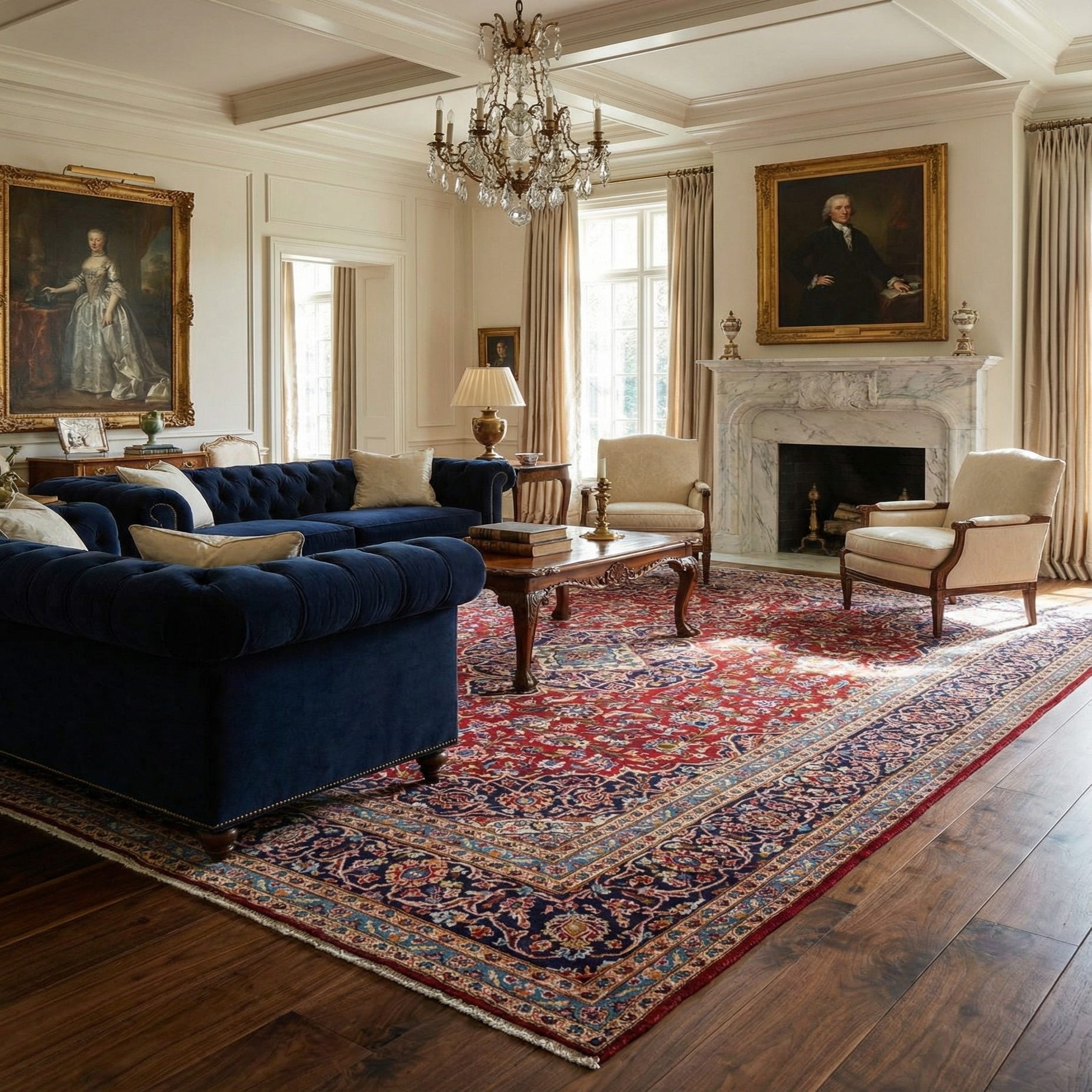 Primary image 9' 7 x 13' 5  Hand Knotted Kashan Persian Wool Rug