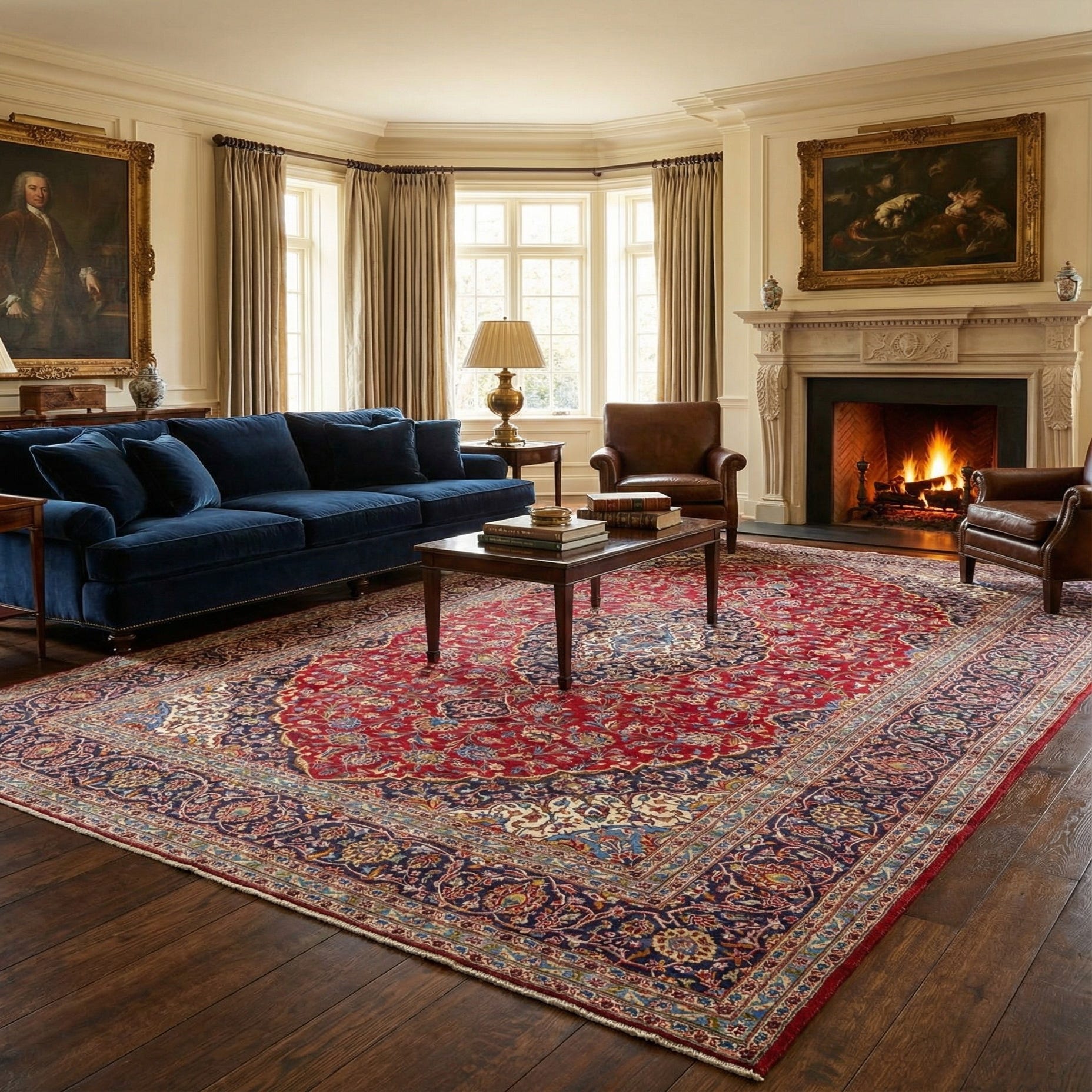Primary image 9' 7 x 12' 9  Hand Knotted Kashan Persian Wool Rug