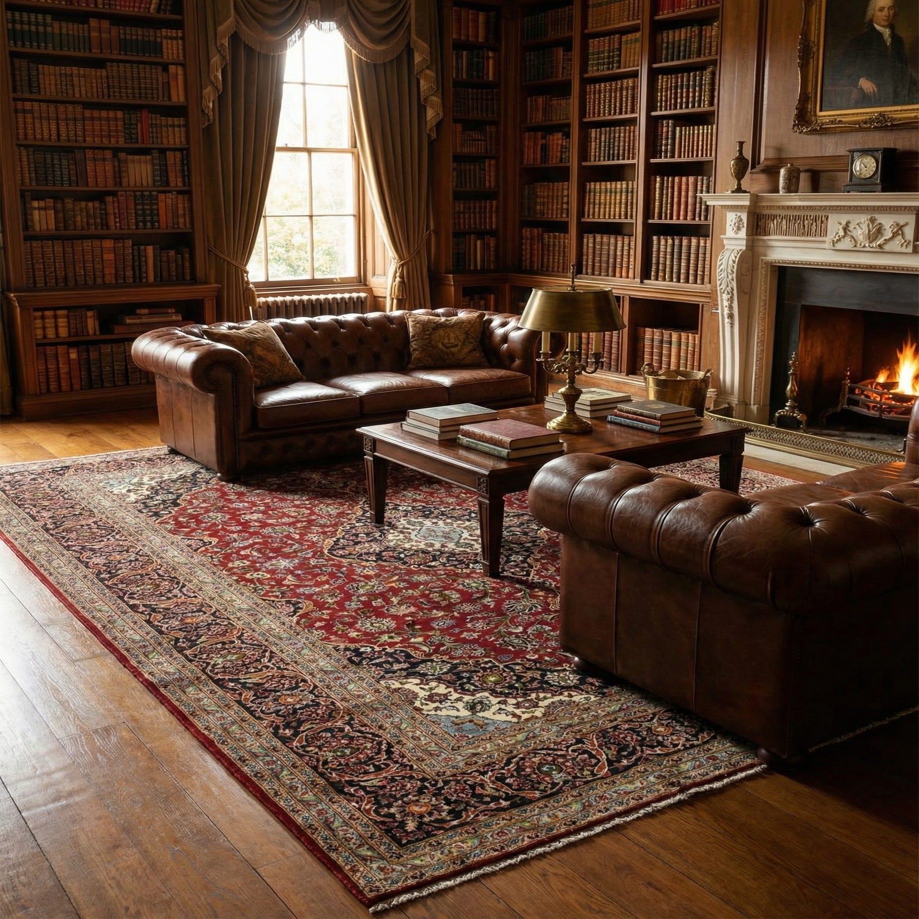 9' 8 x 12' 10 Hand Knotted Kashan Persian Wool Rug