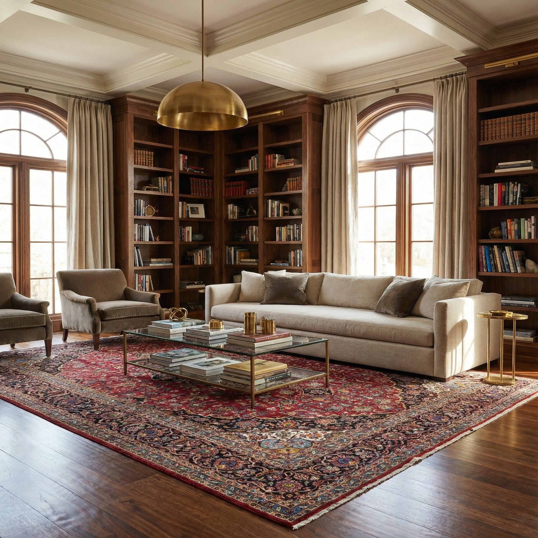 9' 8 x 13' 6 Hand Knotted Kashan Persian Wool Rug