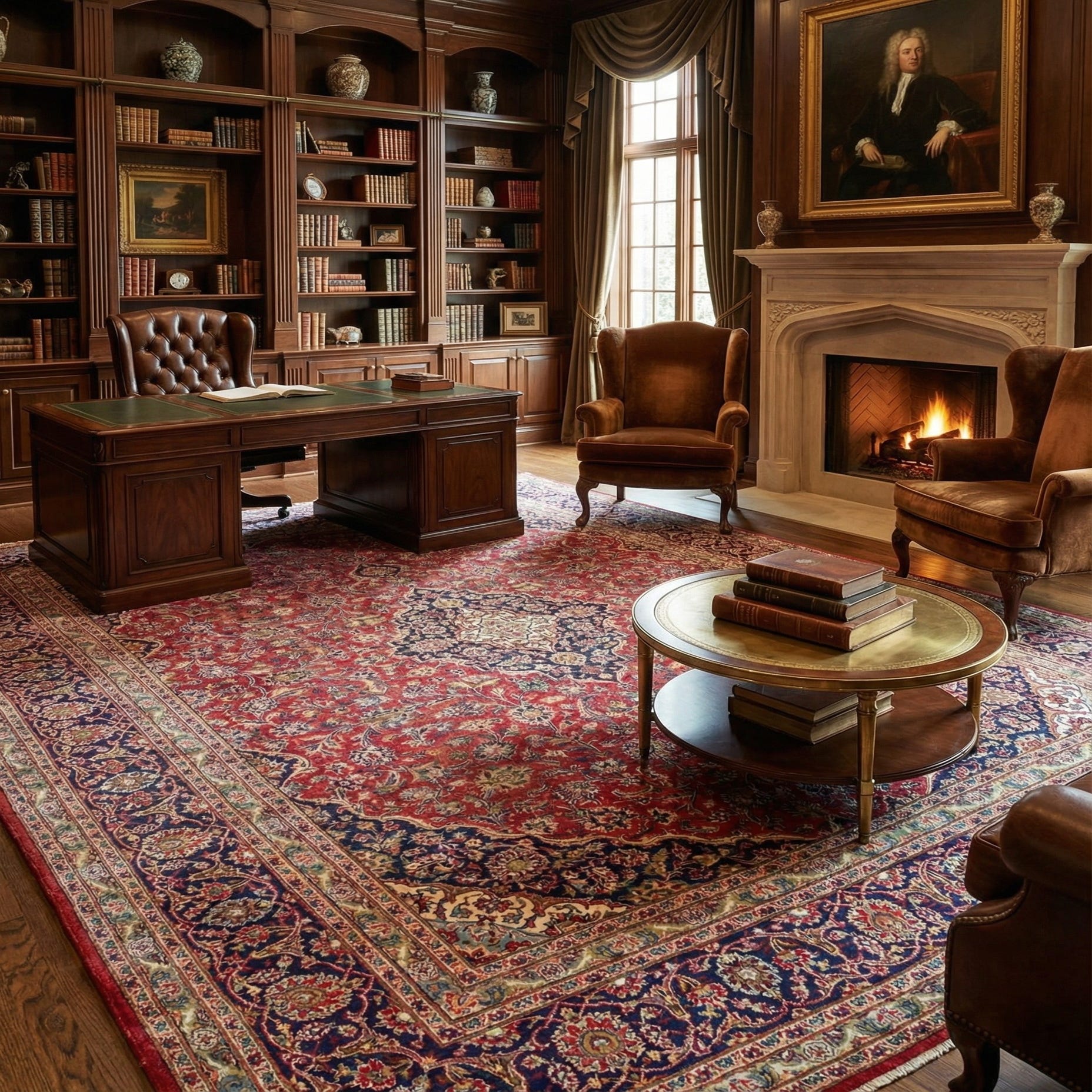 9' 6 x 12' 6 Hand Knotted Mashad Persian Wool Rug
