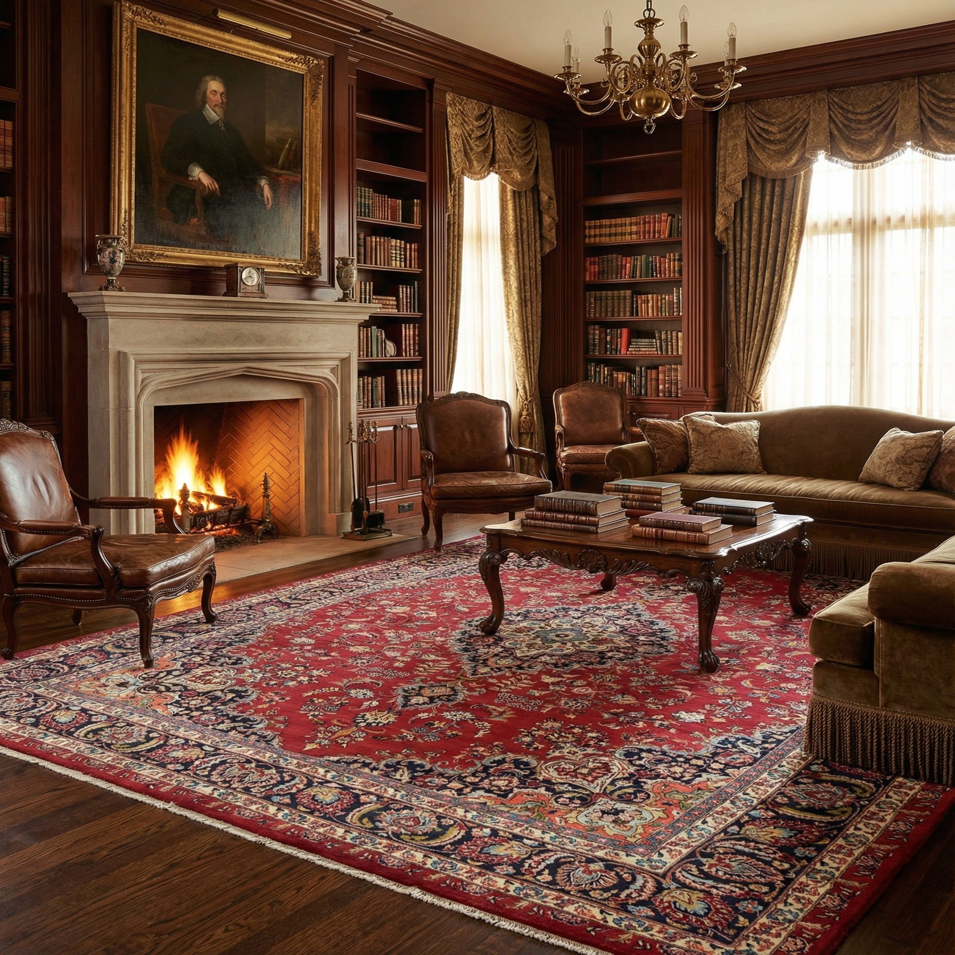 9' 8 x 13' Hand Knotted Mashad Persian Wool Rug