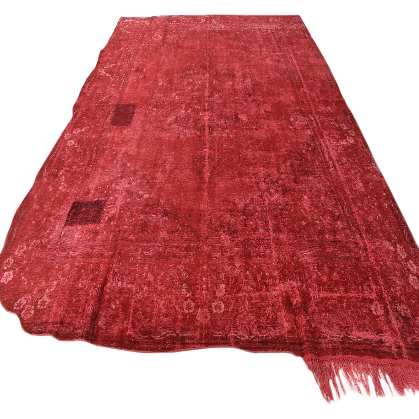 This Persian Ultra Vintage rug is an antique Persian Rug that has been washed, over-dyed, and then shaved down to a low pile. Look at the detail pictures to fully appreciate the uniqueness of this piece.