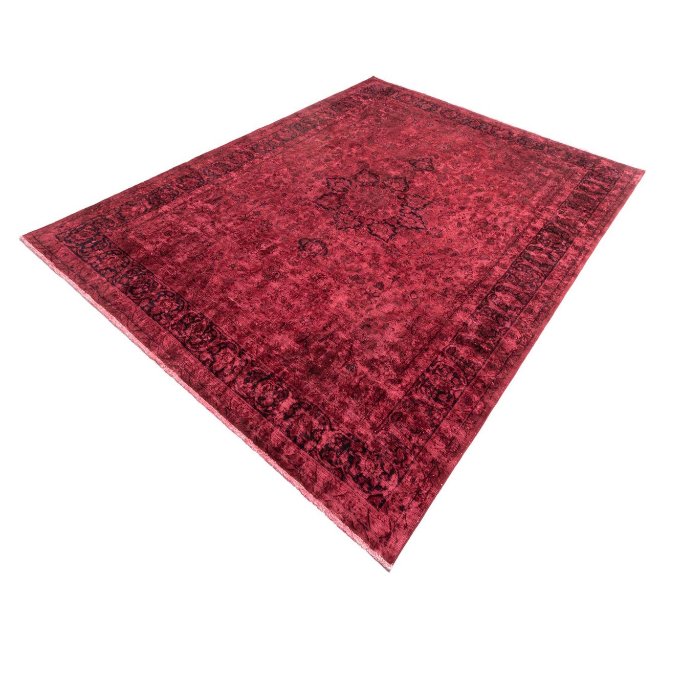 Primary color is Red. Colors in this rug include: Red, Red, Black.