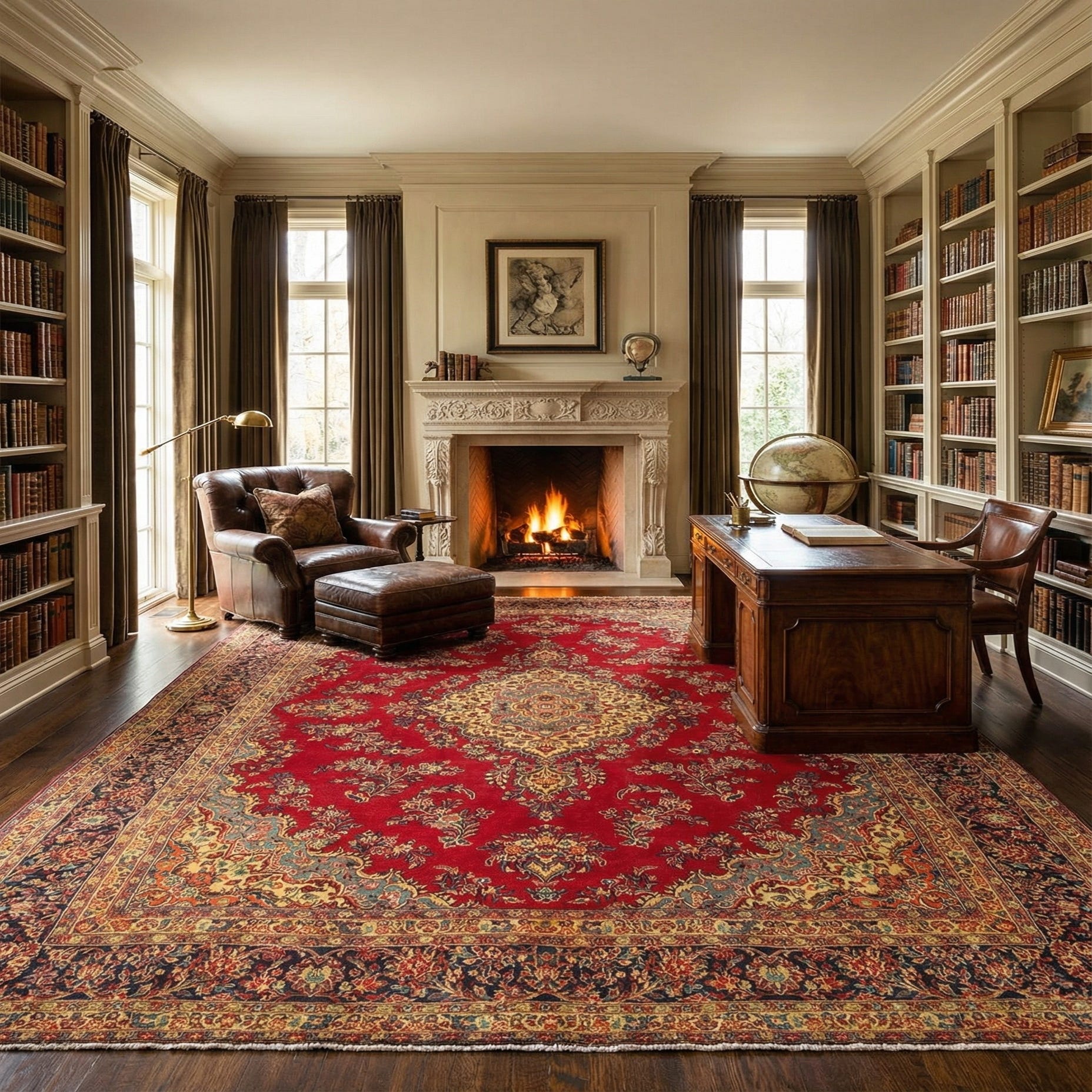 Primary color is Red. Colors in this rug include: Red, Red, Beige, Dark Blue, Pink, Olive.