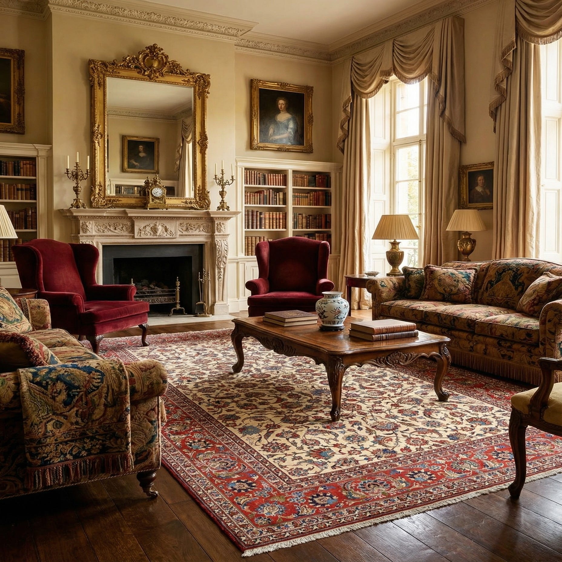 Primary color is Red. Colors in this rug include: Red, Red, Cr?me, Blue, Olive, Brown.