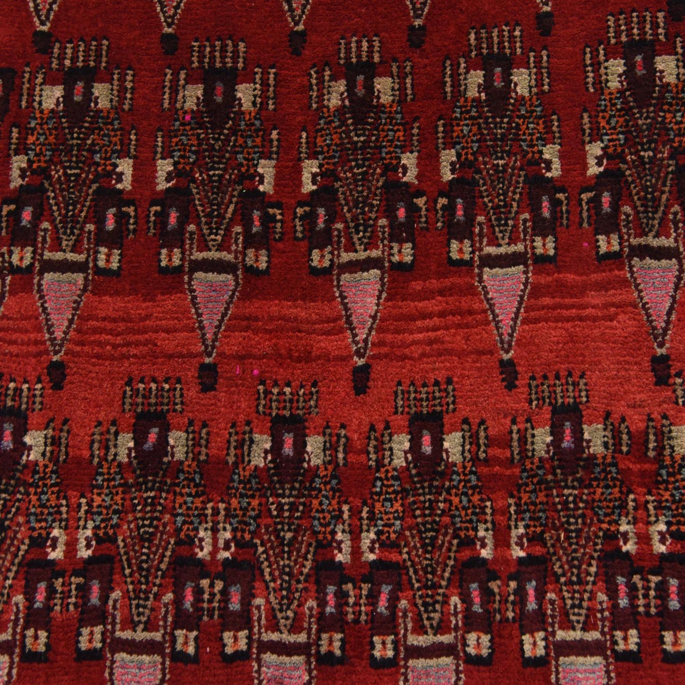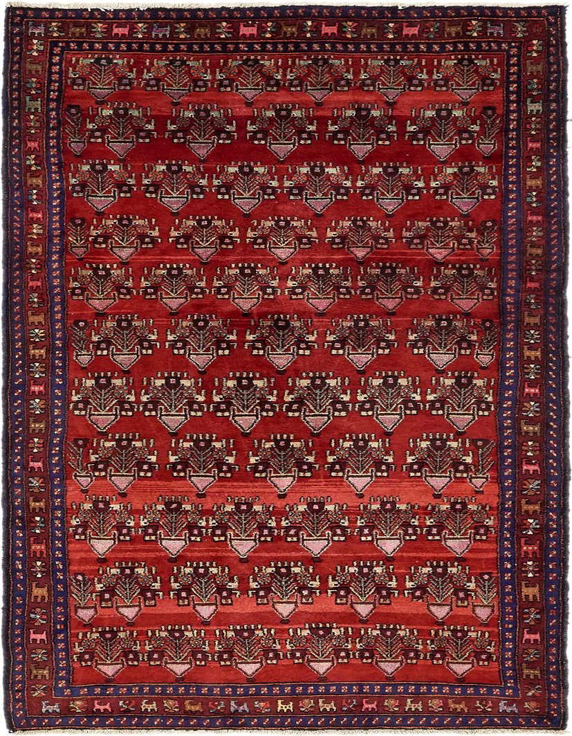 Primary color is Red. Colors in this rug include: Red, Beige, Blue, Burgundy, Green, Ivory, Navy Blue, Olive, Peach.