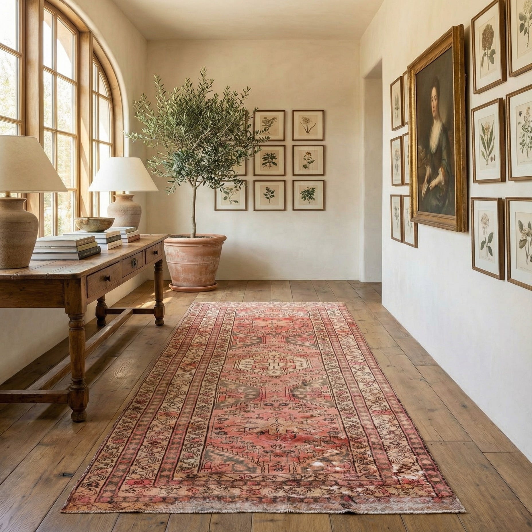 4' 3 x 10' 8 Hand Knotted Ultra Vintage Persian Wool Runner Rug