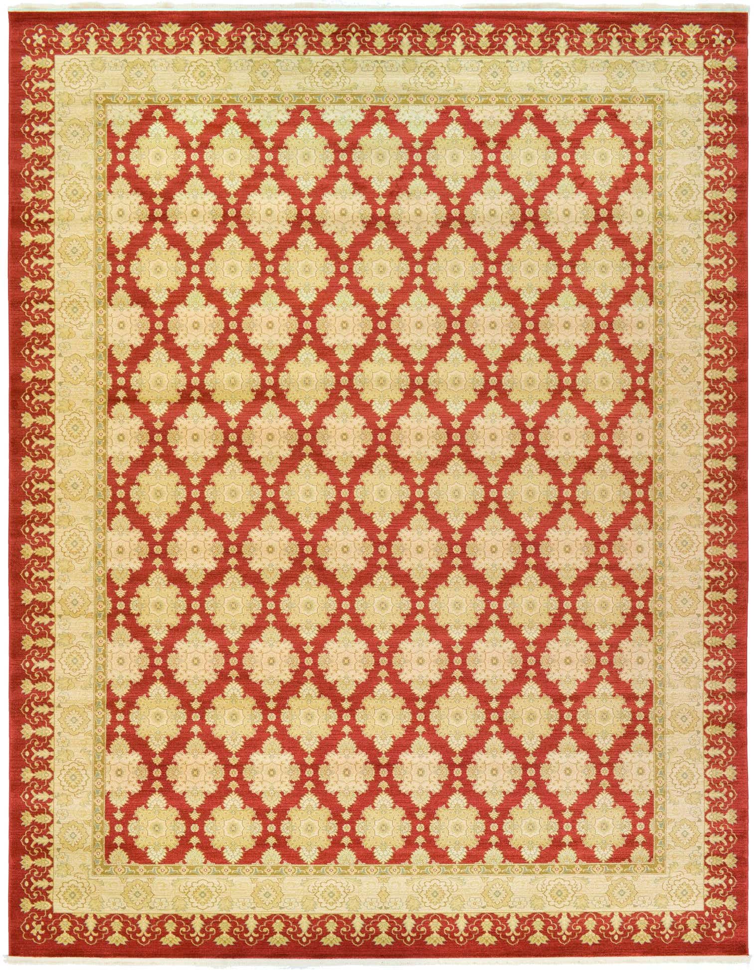 Primary color is Red. Colors in this rug include: Red, Beige, Cream, Light Brown, Light Green.