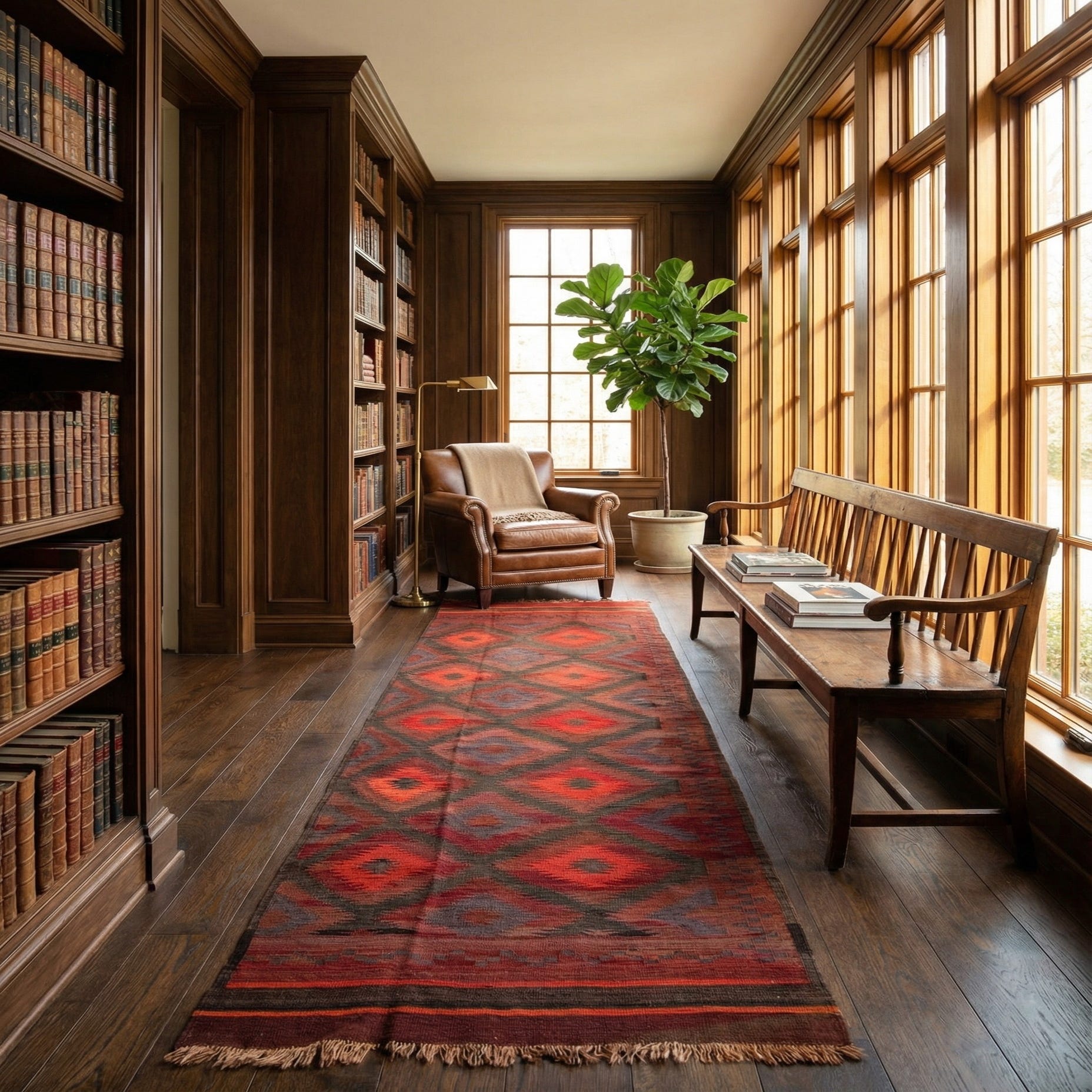 4' x 13' 1 Hand Woven Kilim Fars Wool Runner Rug