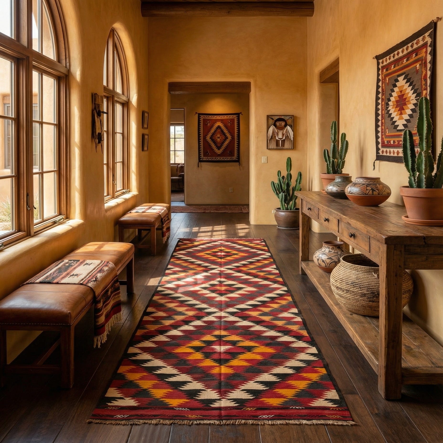 Primary color is Red. Colors in this rug include: Red, Black, Cream, Gold.