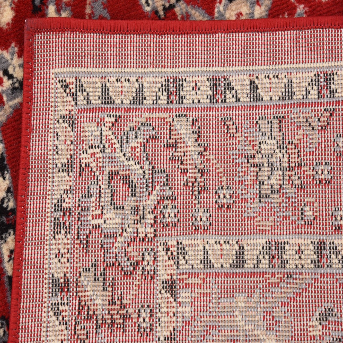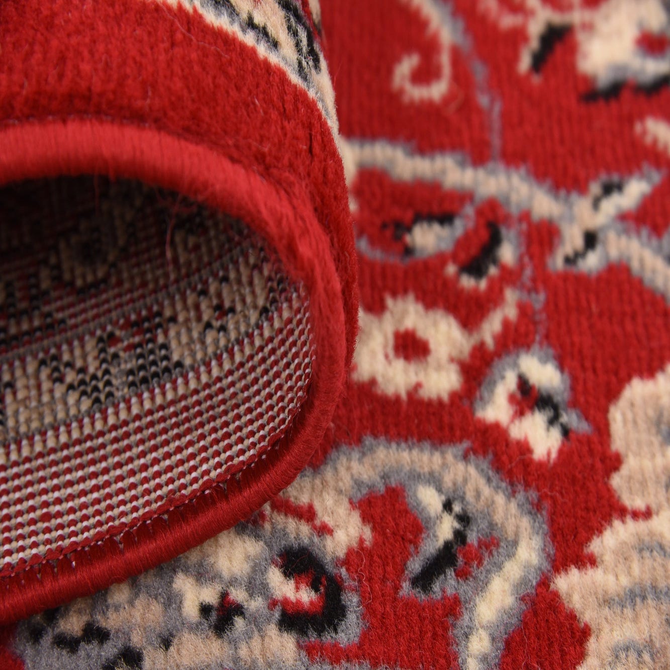 Primary color is Red. Colors in this rug include: Red, Black, Cream, Gray, Tan.