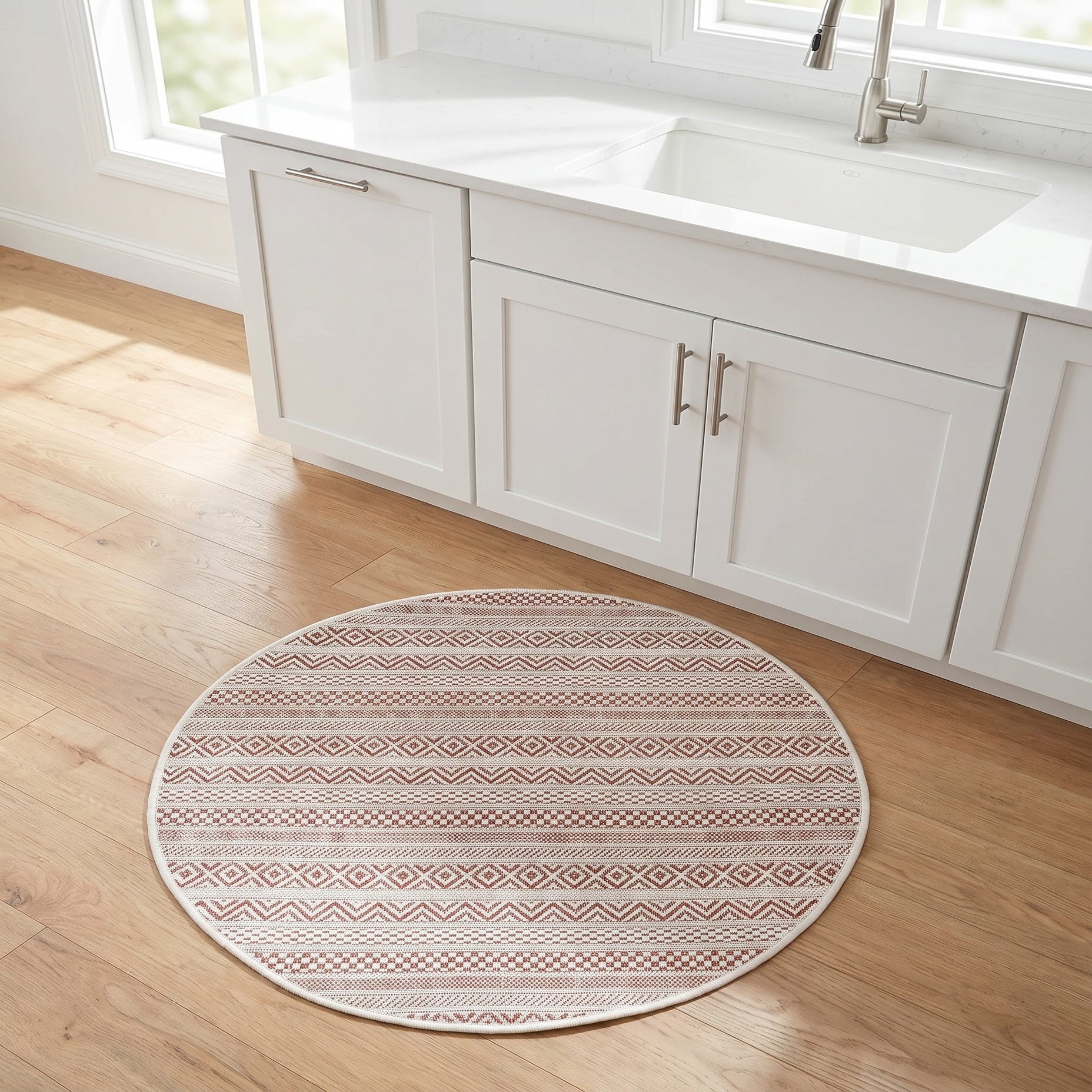 3' x 3' Easy-Clean Striped Indoor / Outdoor Round Rug