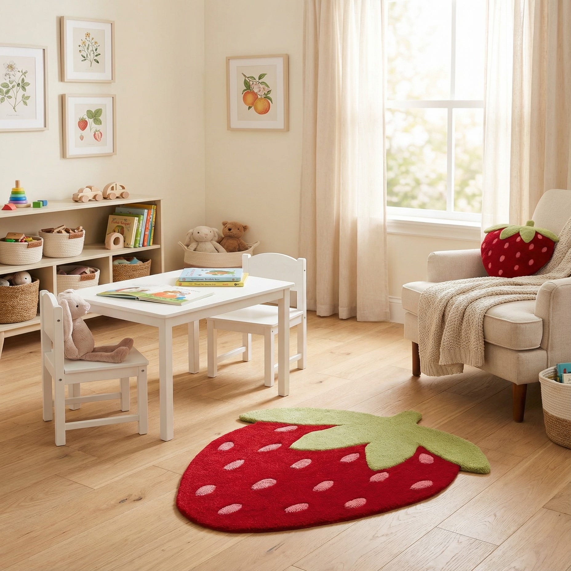 Detail image of 2' 7 x 3' 1 Happy Rugs Strawberry Wool Square