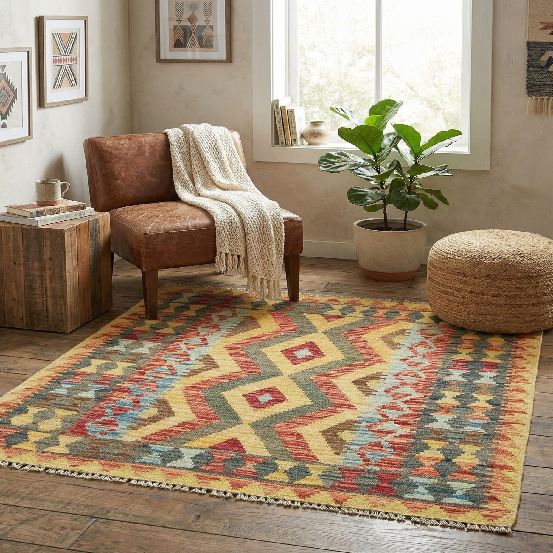 Detail image of 3' 3 x 3' 4  Hand Woven Kilim Maymana Wool Square Rug