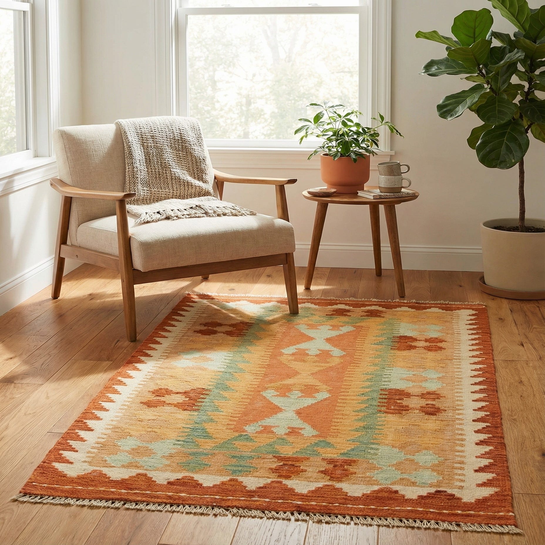 2' 5 x 4' 6 Hand Woven Kilim Waziri Wool Rug