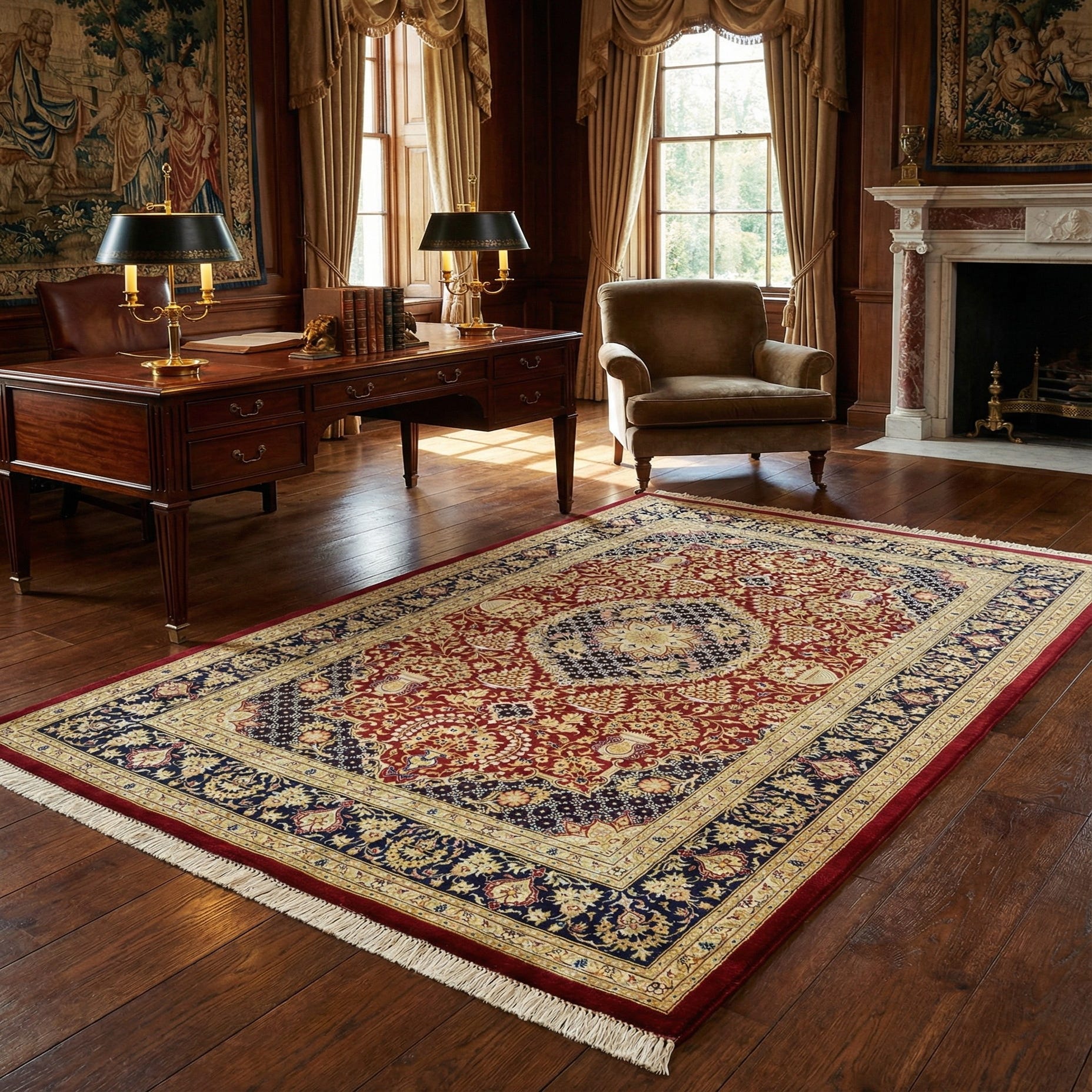 Primary image 3' 2 x 4' 10 Ghom Silk Rug