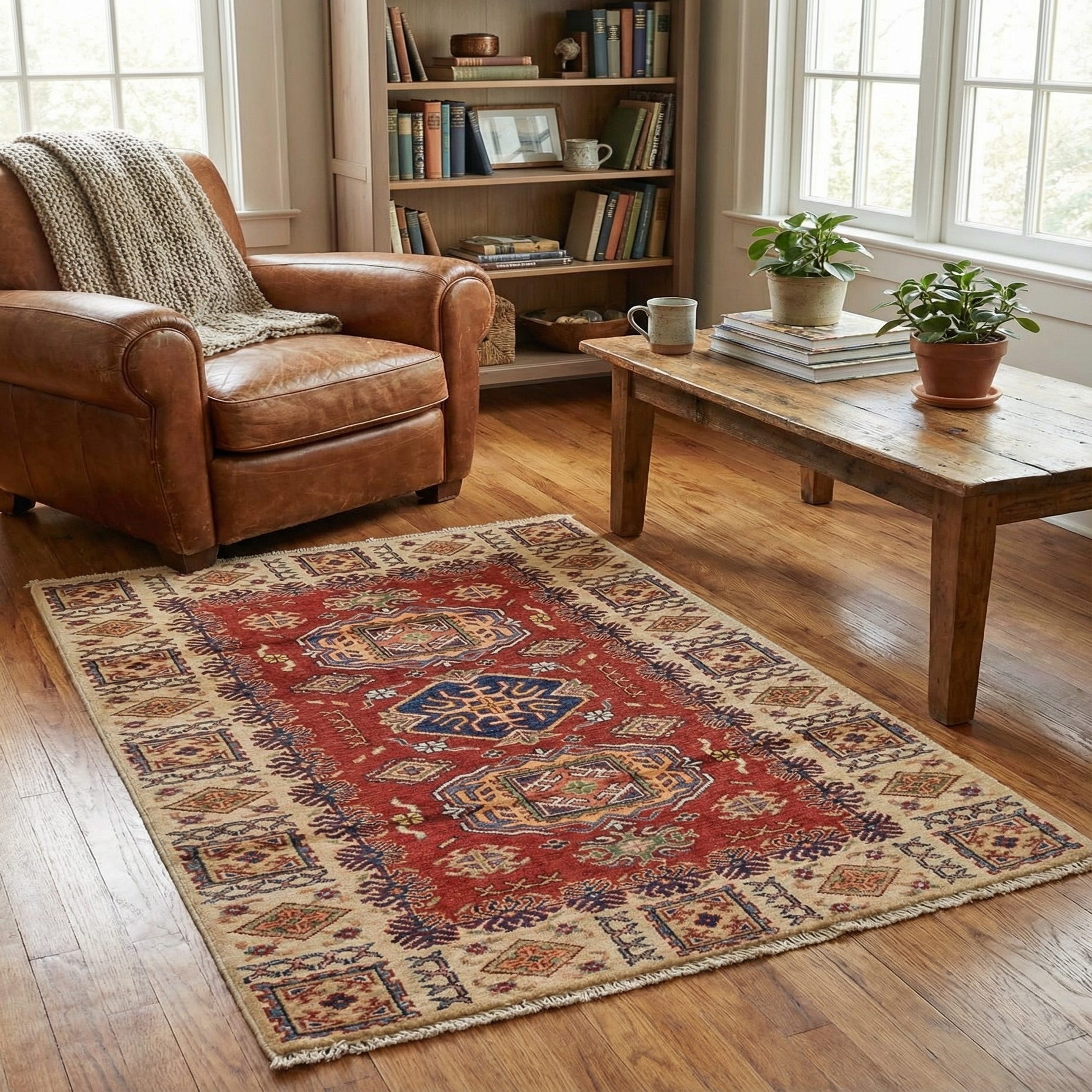 Primary image 3' 4 x 4' 10  Hand Knotted Kazak Oriental Rug